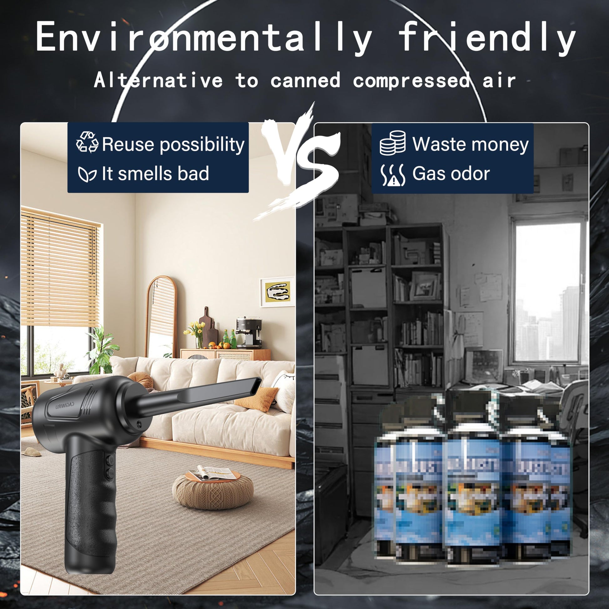 • 【Handy Design & Ultra Portable】Cordless air duster electric nozzle is Light weight and small size, design and comfortable to hold and space saving, convenient to carry around. You can put it in your room or inside the car without taking up space.