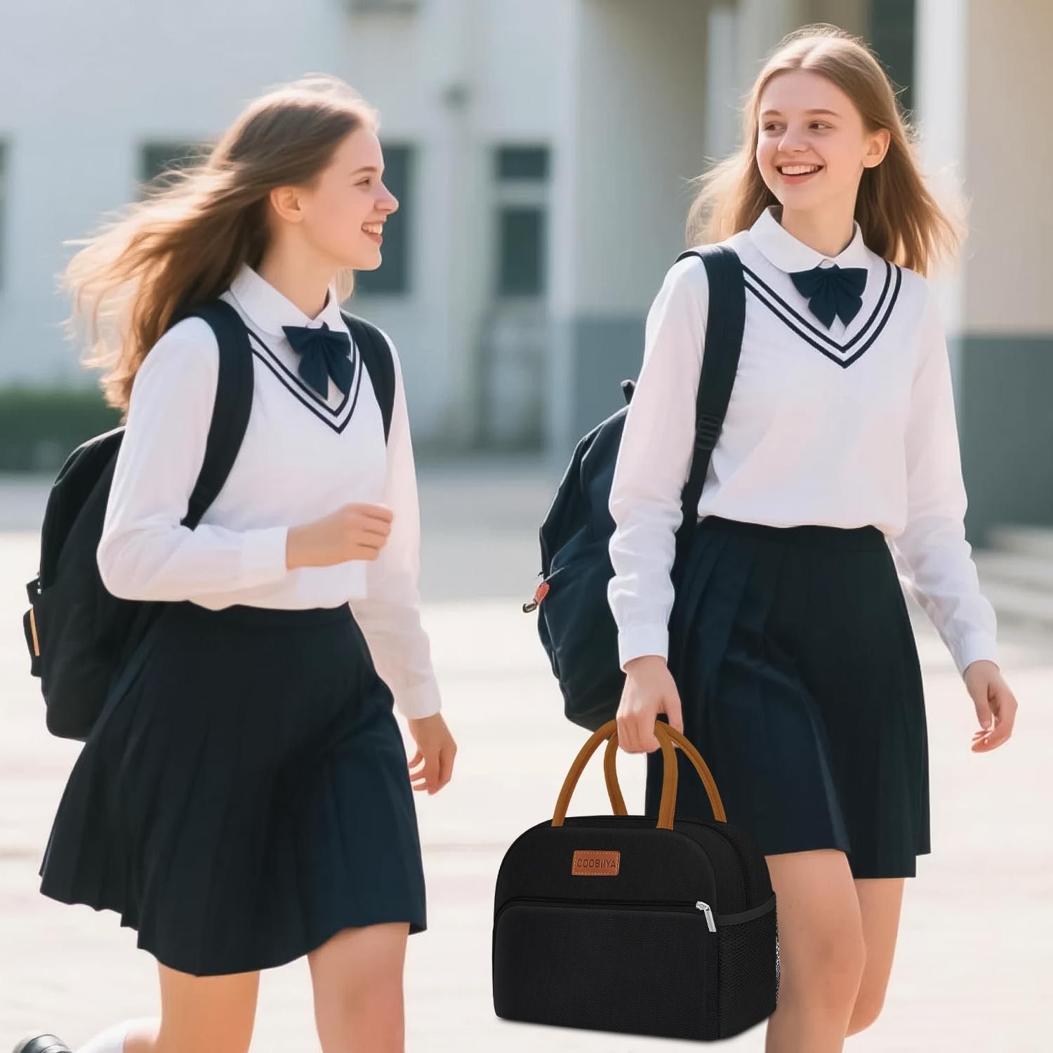 Coobiiya Lunch Box Lunch Bag for Women Adults Men, Reusable Cute Lunch Pail bag - Leakproof, Insulated Lunch Box Tote with Large Capacity, Cooler Lunch Container for Work/Travel/Office (Black)
