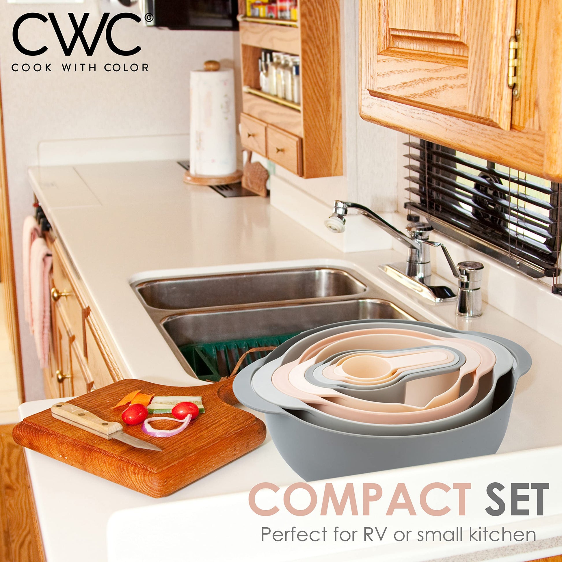 COOK WITH COLOR Nesting Bowls with Measuring Cups Colander and Sifter Set - Includes Mixing Bowls, Colander, Sifter and Measuring Cups, Pink, 8 Pc Bowl