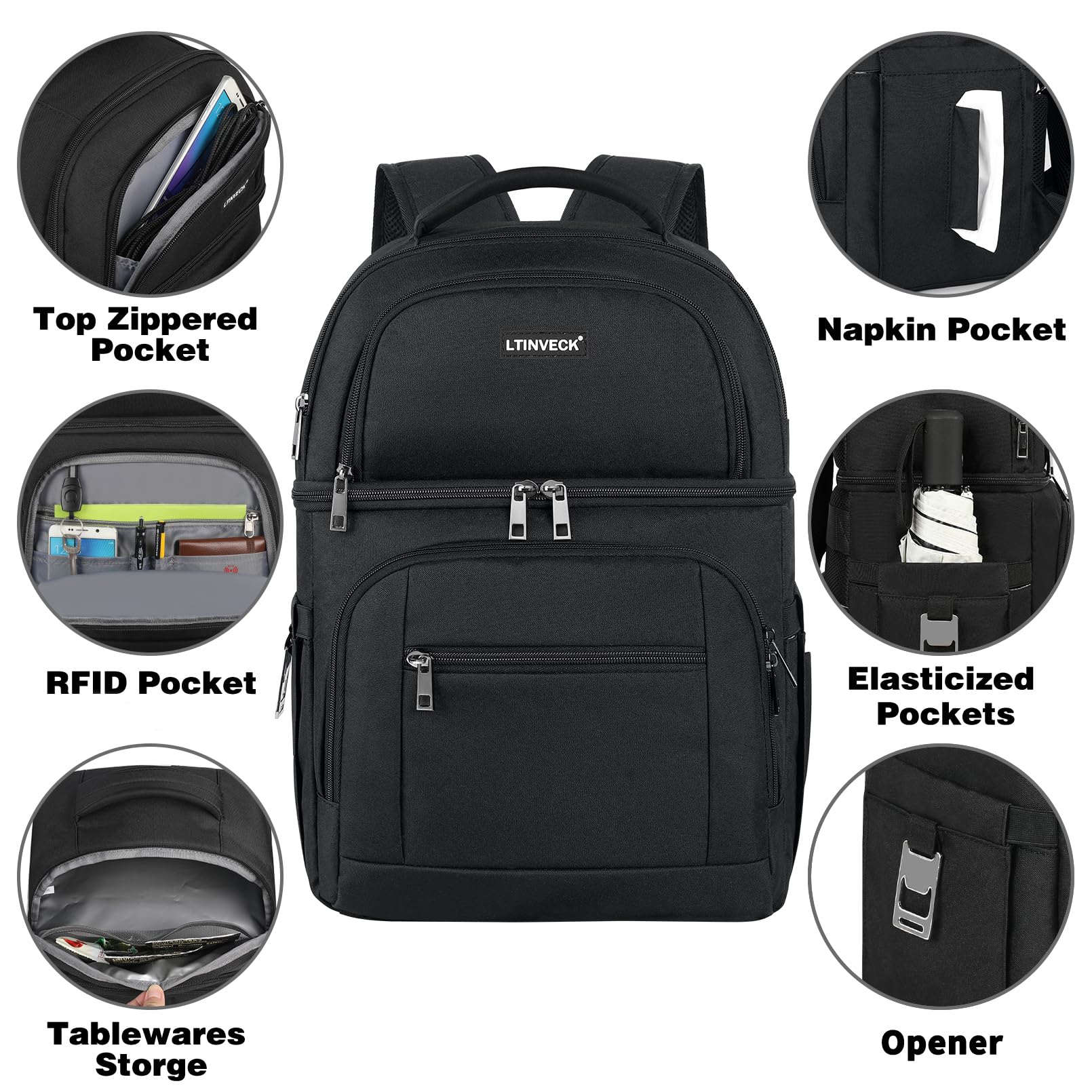 Cooler Backpack,Insulated Backpack Cooler Leakproof Double Deck Cooler Bag for Men Women RFID Lunch Backpack