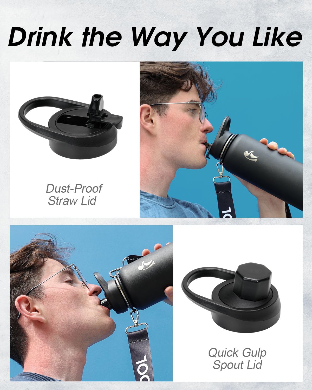 • Dual Lids for Every Mood: Our water bottles choose the dust-proof straw lid for one-handed sipping or the stylish spout lid for an indulgent gulp. With both 100% leak-proof, you're covered for all your daily adventures.