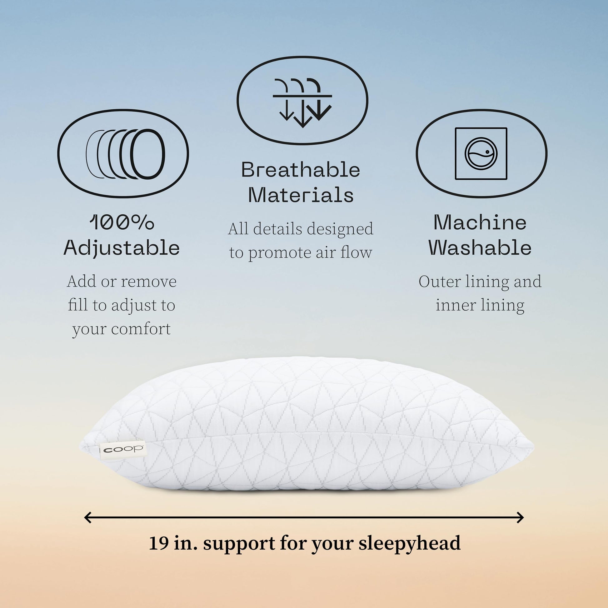 Coop Home Goods Original Toddler Adjustable Pillow, Soft, Breathable, Washable Mini Bed Pillow for Kids with Premium Memory Foam and Zippered Cover, CertiPUR-US/GREENGUARD Gold