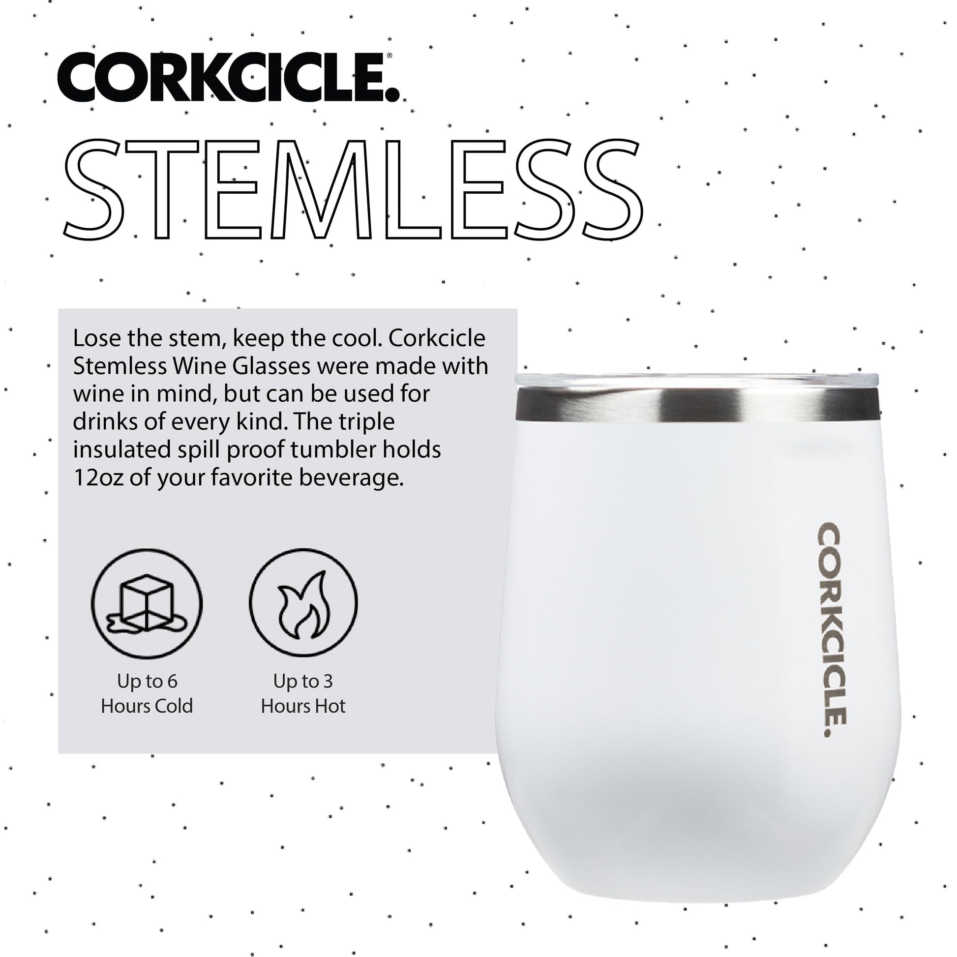 Corkcicle Stemless Wine Tumbler - Keeps Drinks Cold for 6 Hours - Triple-Insulated Stainless Steel - Non-Slip Base - Summer Drinkware Gift - Keeps Drinks Ice Cold - 12 oz - Gloss White