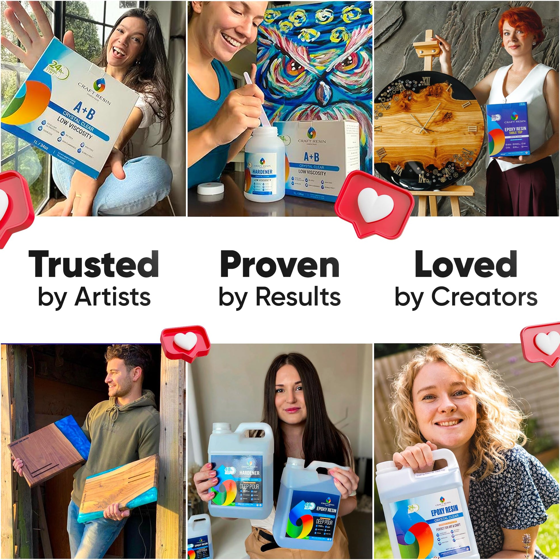 • ARTISAN APPROVED QUALITY - Unlock your artistic potential with Craft Resin. Premium clear epoxy resin kit and hardener allows you to create beautiful pieces with a glass-like finish and no yellowing over time. Popular for DIY art, tabletop coating, mold casting, canvas, coasters and jewelry making.