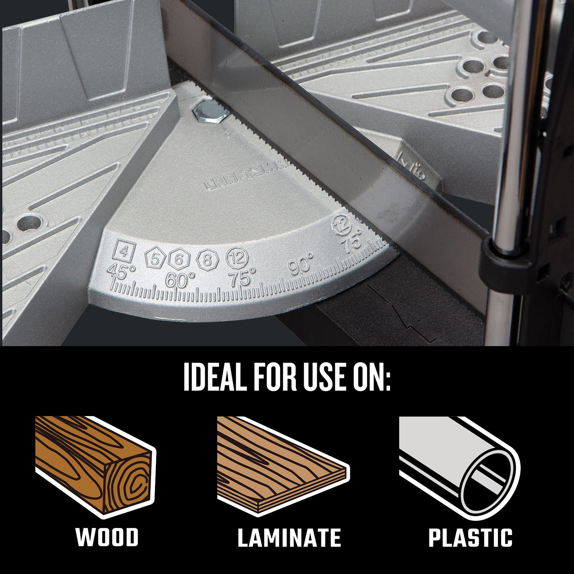 • SECURE MATERIAL: Clamps hold work in place and work stop allows for quick, repetitive cuts
