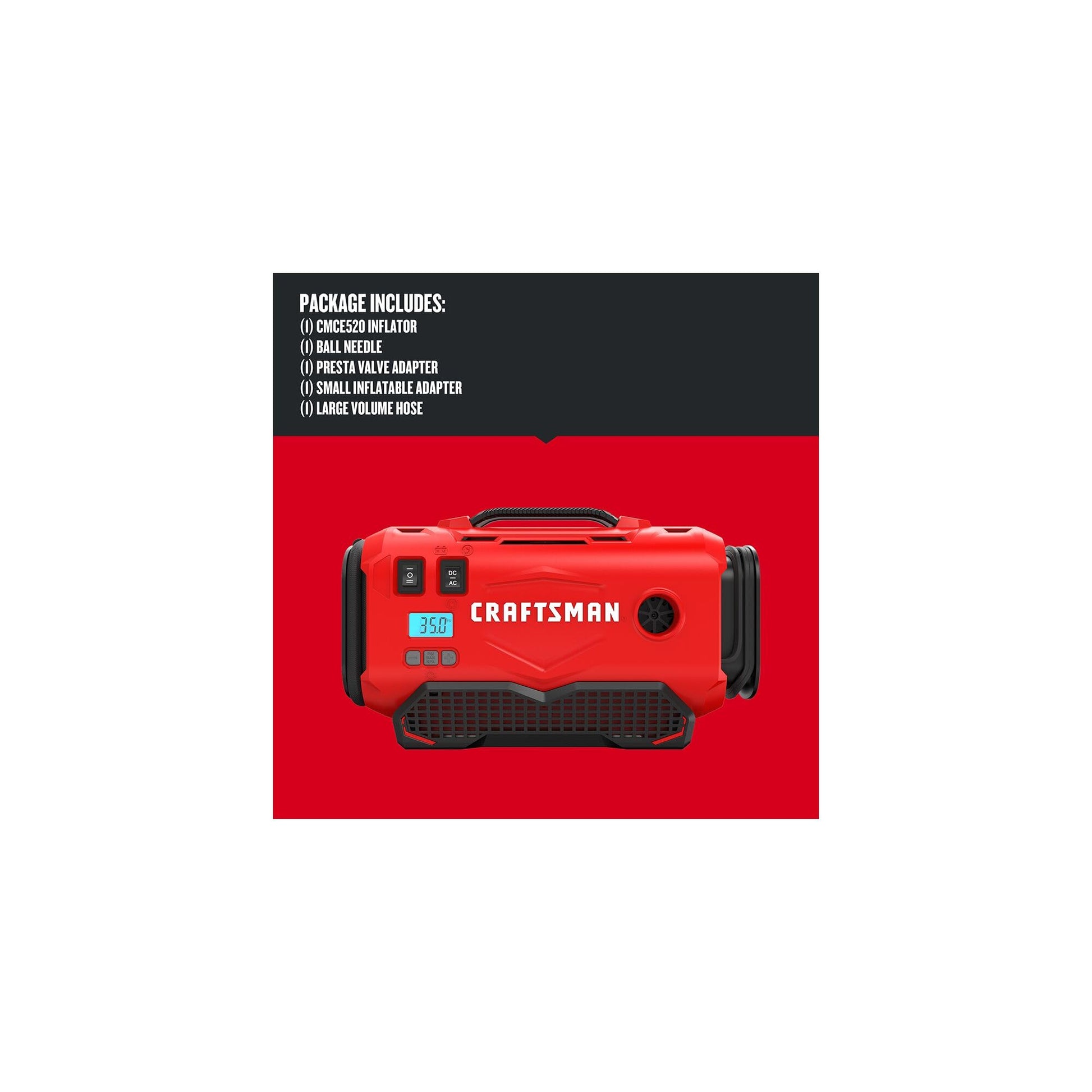 CRAFTSMAN V20 Tire Inflator, Portable Air Compressor, 3 Modes: Cordless, 120V Corded, and 12V Car Adapter, Air Pump, Battery Sold Separately (CMCE520B)