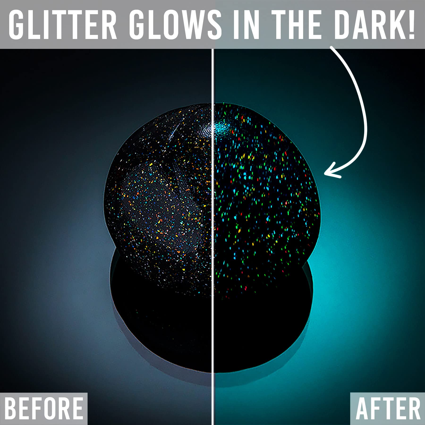 • NON STICKY PUTTY: Dive into the mystery with our black Thinking Putty adorned with rainbow holographic glitter in daylight and captivating, multicolored sparkles that glow in the dark, providing an enchanting sensory experience for users of all ages.