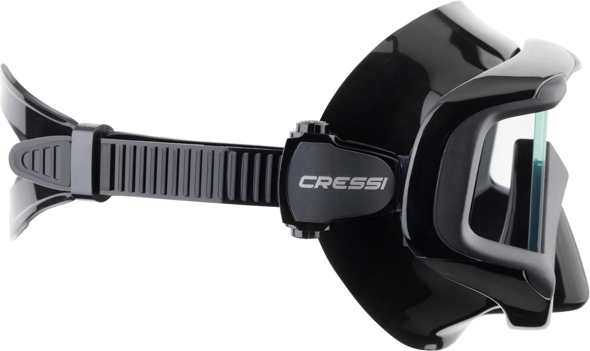Details: The Liberty Triside features a wide, mono front lens with 2-sided lenses to ensure a panoramic view without interruption. The result is a mask that allows maximum light and feels as open as the ocean itself. All lenses are tempered glass for the best clarity. The skirt is made of hypoallergenic silicone to ensure comfort and a perfect seal. It is a breeze to adjust the length of the strap, thanks to the two buttons on the buckle, which can also be used while wearing gloves. The frame is colored with a paint effect that makes the mask elegant and beautiful to see, which can be coordinated with your equipment. The Liberty Duo is designed by Cressi and made in Taiwan. Cressi has been an Italian brand pioneer in scuba diving, snorkeling, and swimming equipment since 1946. The product is covered by a 2-year limited warranty.
