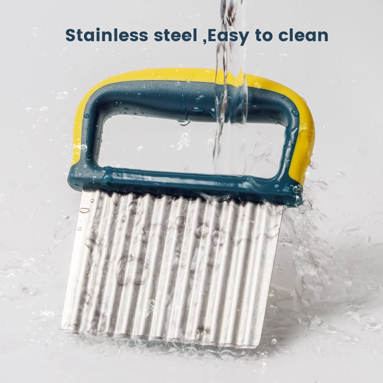 • Multipurpose: crinkle cutter for veggies knife is strong durable,non slip handle is comfortable to grip and 0.2Inch Stainless steel sharp blade effortless slicing to cut the potato, onion, tomato, lemon or other vegetables saving you time preparing food