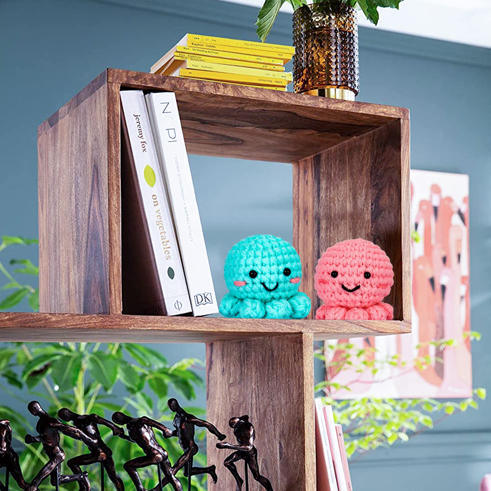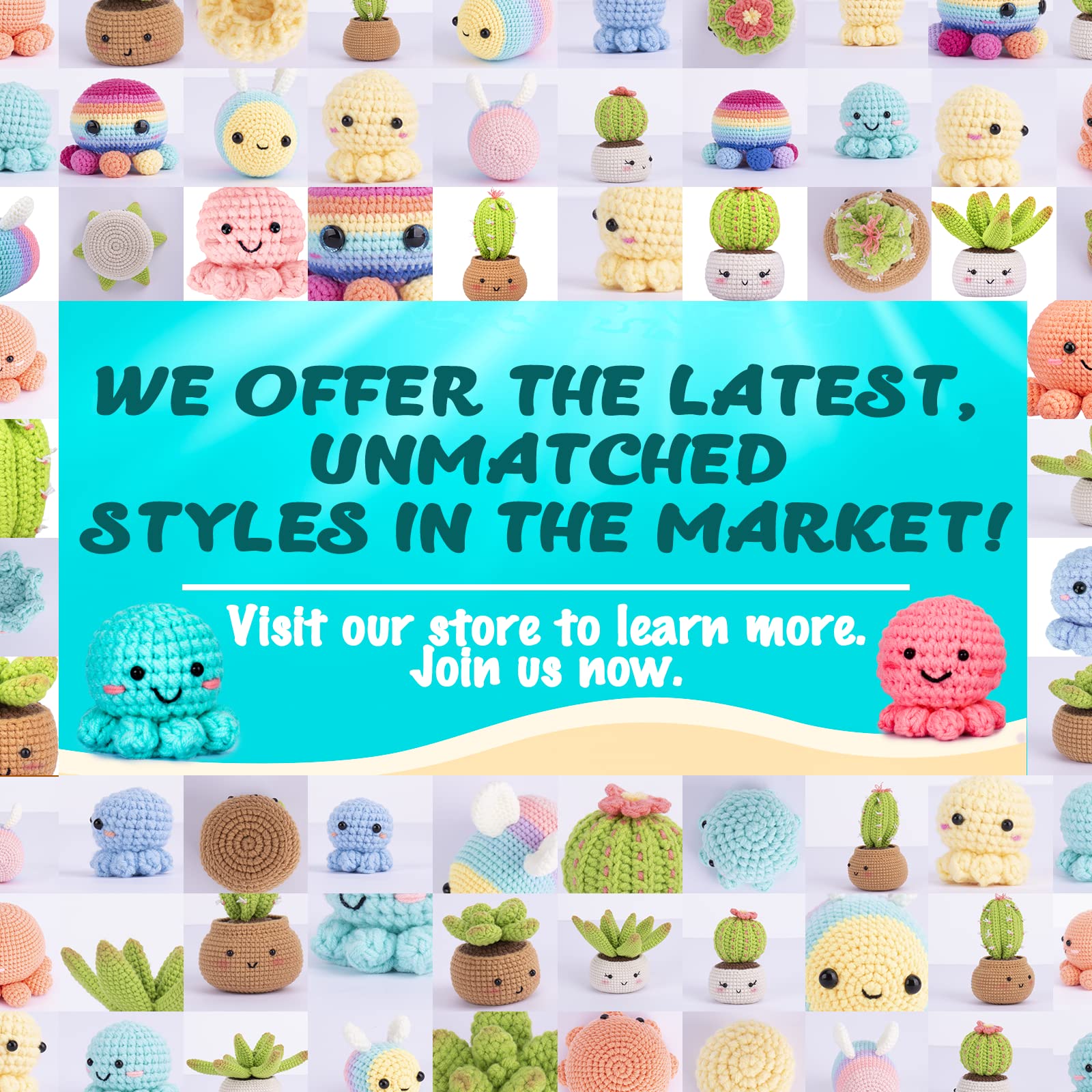 • All-In-One Crochet Kit equipped with yarn, stuffing, needle, eyes, buckles, crochet hooks, scissors, octopus pattern, beginner's manual