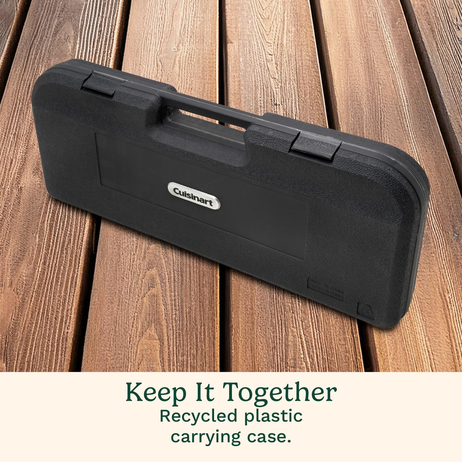 • STORAGE CASE: The grill set is stored in a compact recycled plastic carrying case, perfect for keeping your grill accessories organized.