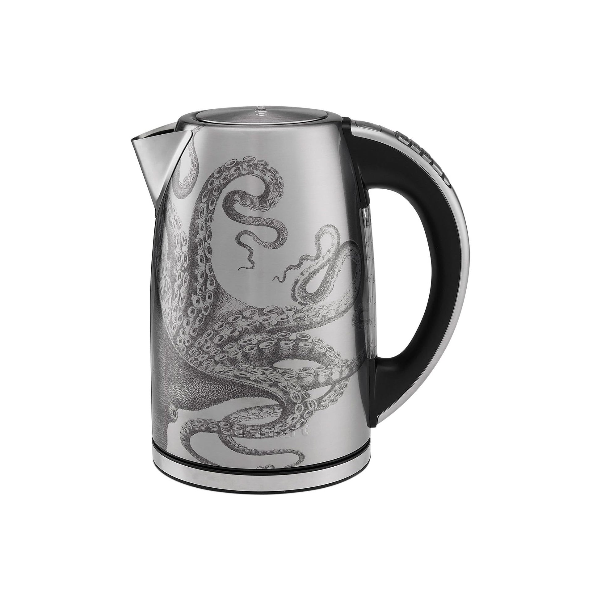 Details: The Cuisinart Electric Kettle with elegant Caskata print is designed for every occasion and equipped with 1500 watts of power for fast heating. This 1.7-liter capacity PerfecTemp electric tea kettle brings up to 1-2/3 liters of water to a boil in a matter of minutes. Better than that, it offers 6 different preset heat settings, which allows for steeping tea at just the right temperature depending on the variety. Using the simple one-touch controls on the kettle's handle, select 160°F for delicate teas, 175°F for green tea, 185°F for white tea, 190°F for oolong tea, 200°F for French press coffee, and Boil for black tea or to make instant cocoa, oatmeal, noodles, and more. Additional features of this Cuisinart kettle include a stay-cool nonslip handle, a lid release button, a blue backlit water window with measurement marks, a concealed heating element to prevent mineral buildup, and a removable, washable scale filter. The Cuisinart tea kettle features a dripless pour spout and boil-dry protection with auto shutoff to provide safety and ease of use. The easy-to-use one-touch controls include a Start button and a Keep Warm button, which maintains your selected temperature for up to 30 minutes. A user manual with recipes is included. The Cuisinart Electric Kettle comes with a limited 3-year warranty.