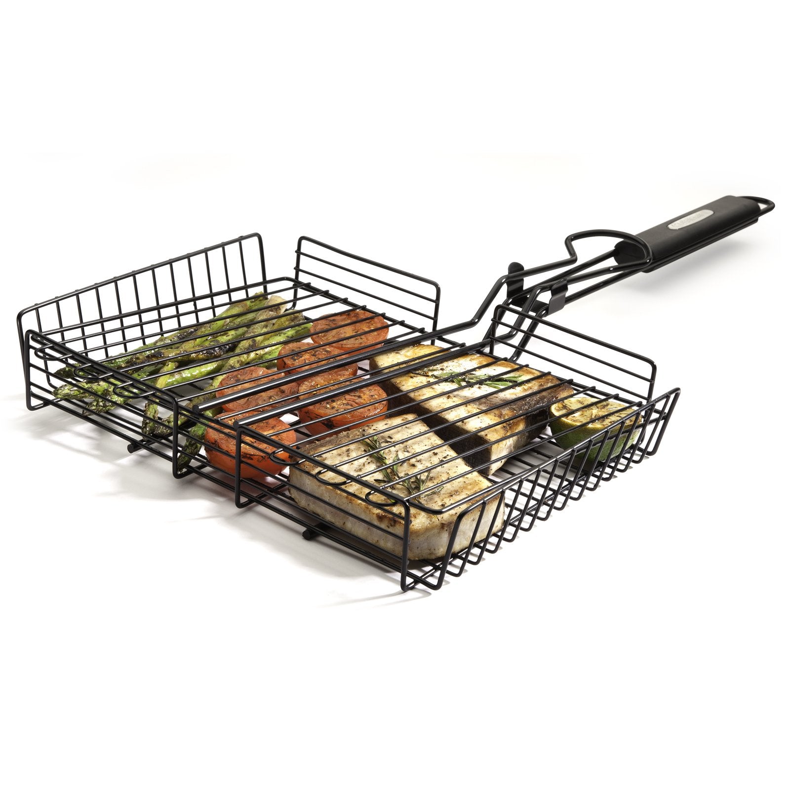 • Locks in food and prevents it from falling through your grill grate. Elongated heat-resistant handle provides comfortable turning ; adjusts to accommodate a variety of food thicknesses