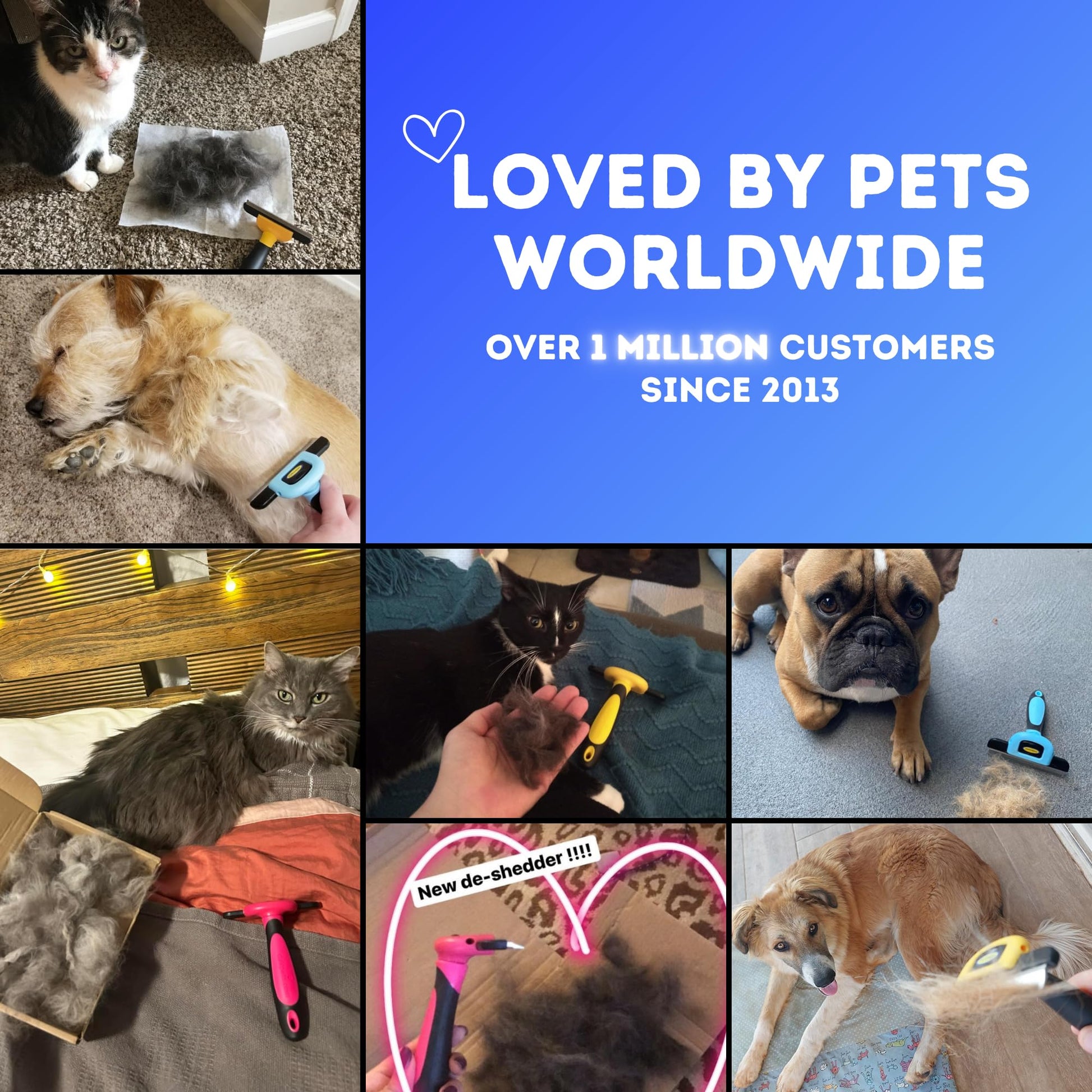 • OVER A MILLION UNITS SOLD WORLDWIDE! Trusted by countless happy customers to keep their furry friends looking and feeling their best. DakPets cat and dog deshedding brush gently yet firmly removes trapped hair, reducing shedding by up to 95% in just 10 minutes. Our 4-inch cat and dog hair remover can be used on short and long-haired dogs and cats of any size, making it a convenient solution for all your pets.