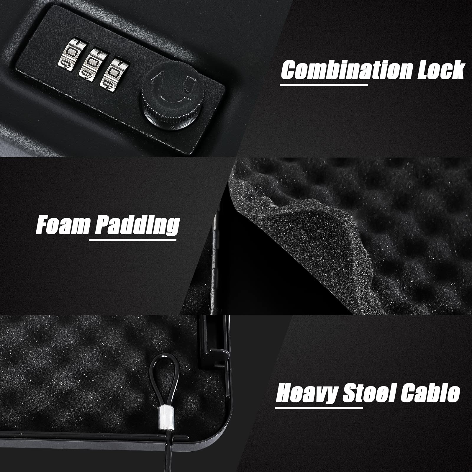 • DURABLE CASE AND SOLID STRUCTURE - The car gun safe is made of premium and strong material steel. Because of its all-steel structure, it has rust resistance and is difficult to be destroyed. At the same time, the bedside gun safe includes thick protective foam inserts to ensure security and protect your valuables from being scratched or damaged.