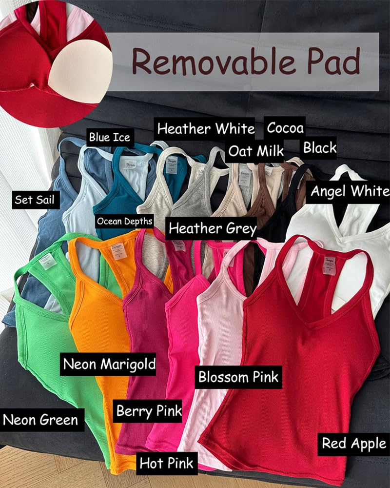 • Bra-Free Comfort: Our Danysu racerback fitted tank top features removable pads and a double-layered design on the breast area, offering extra support and coverage. Its snug fit holds everything in place, eliminating the need for a bra!