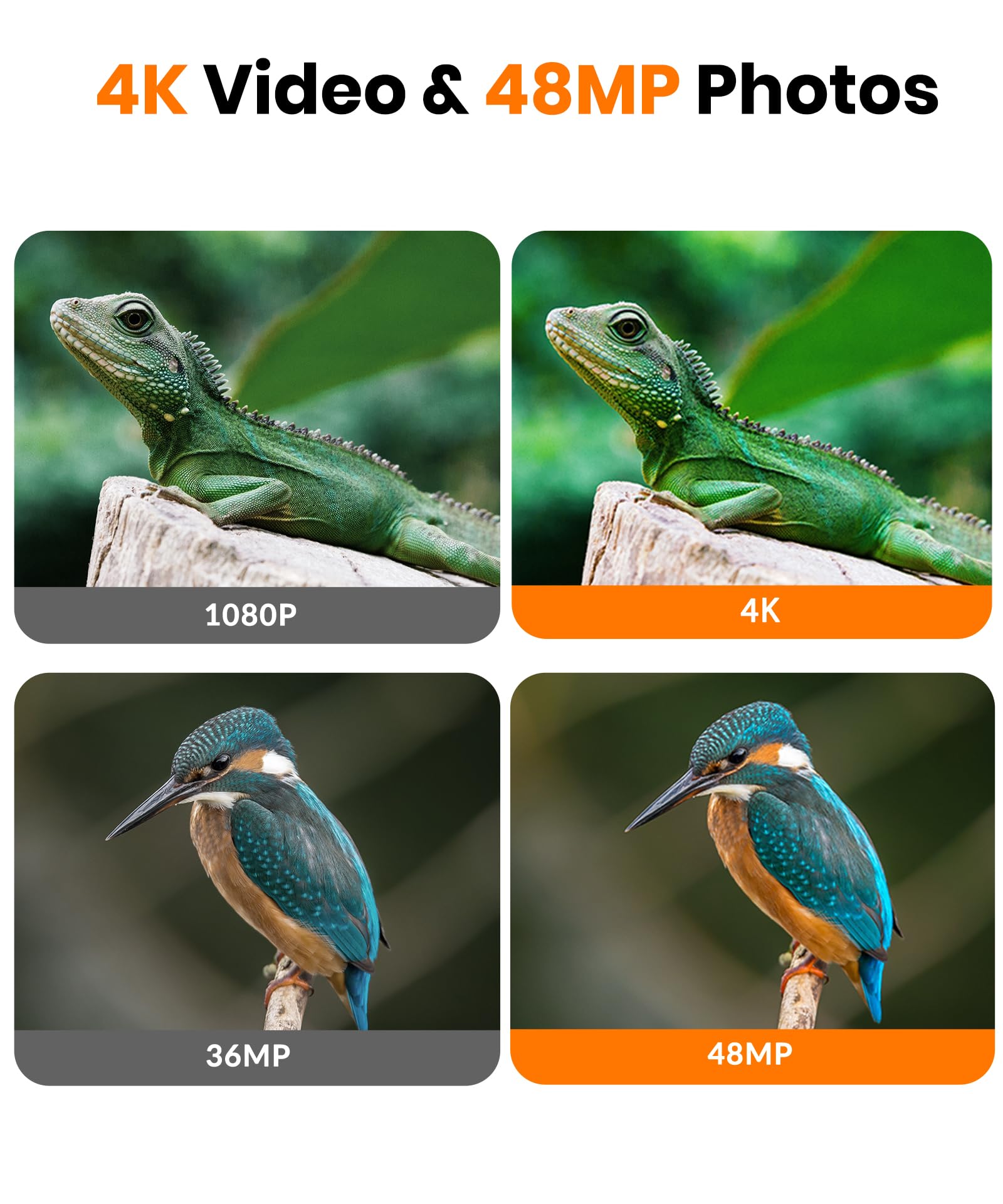 • Ultra-Sharp Resolution: This backcountry camera offers HD 4K audio video and 48 megapixel images, allowing you to get up close and personal with the wildlife world and capture more detail with crisp, high-quality photos and videos