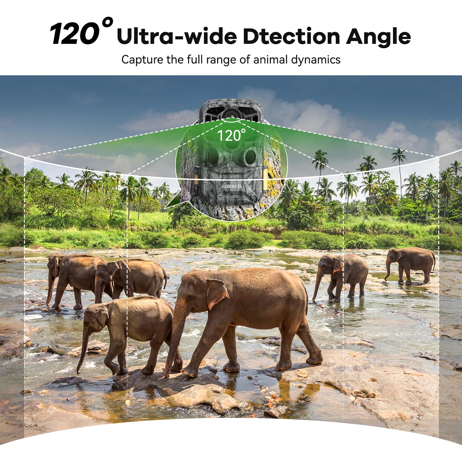 • Wide Detection Field Of View: The game camera has a 120° wide-angle lens to cover a wider area and is equipped with equipped with three PIR sensors for increased sensitivity to help you capture more interesting animal behavior.