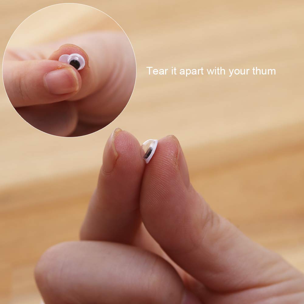• Package includes: Total 1000pcs black googly wiggle eyes, including 260 pcs 6mm wiggle eyes, 200 pcs 7mm wiggle eyes, 150 pcs 8mm wiggle eyes, 240 pcs 10mm wiggle eyes, 150 pcs 12mm wiggle eyes.
