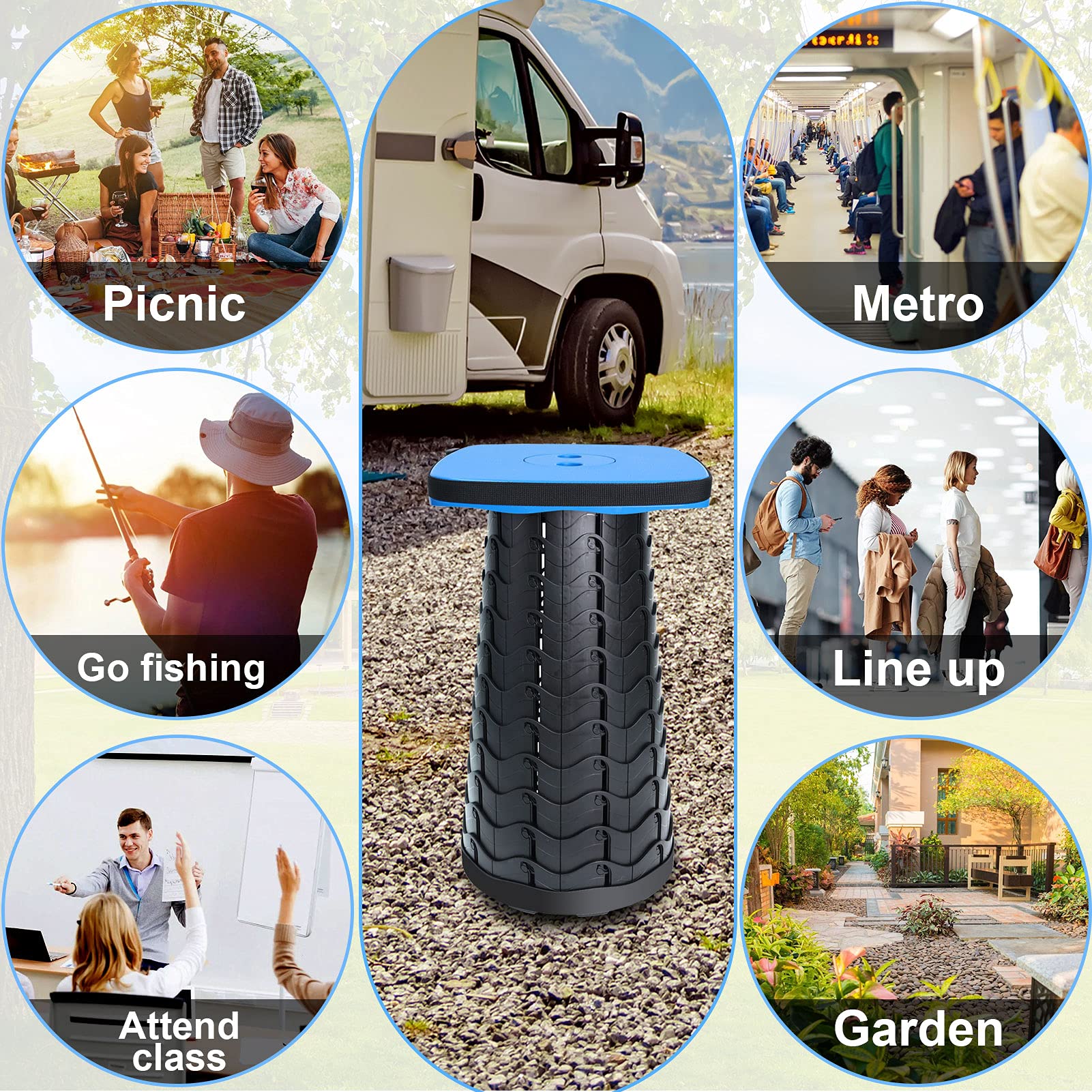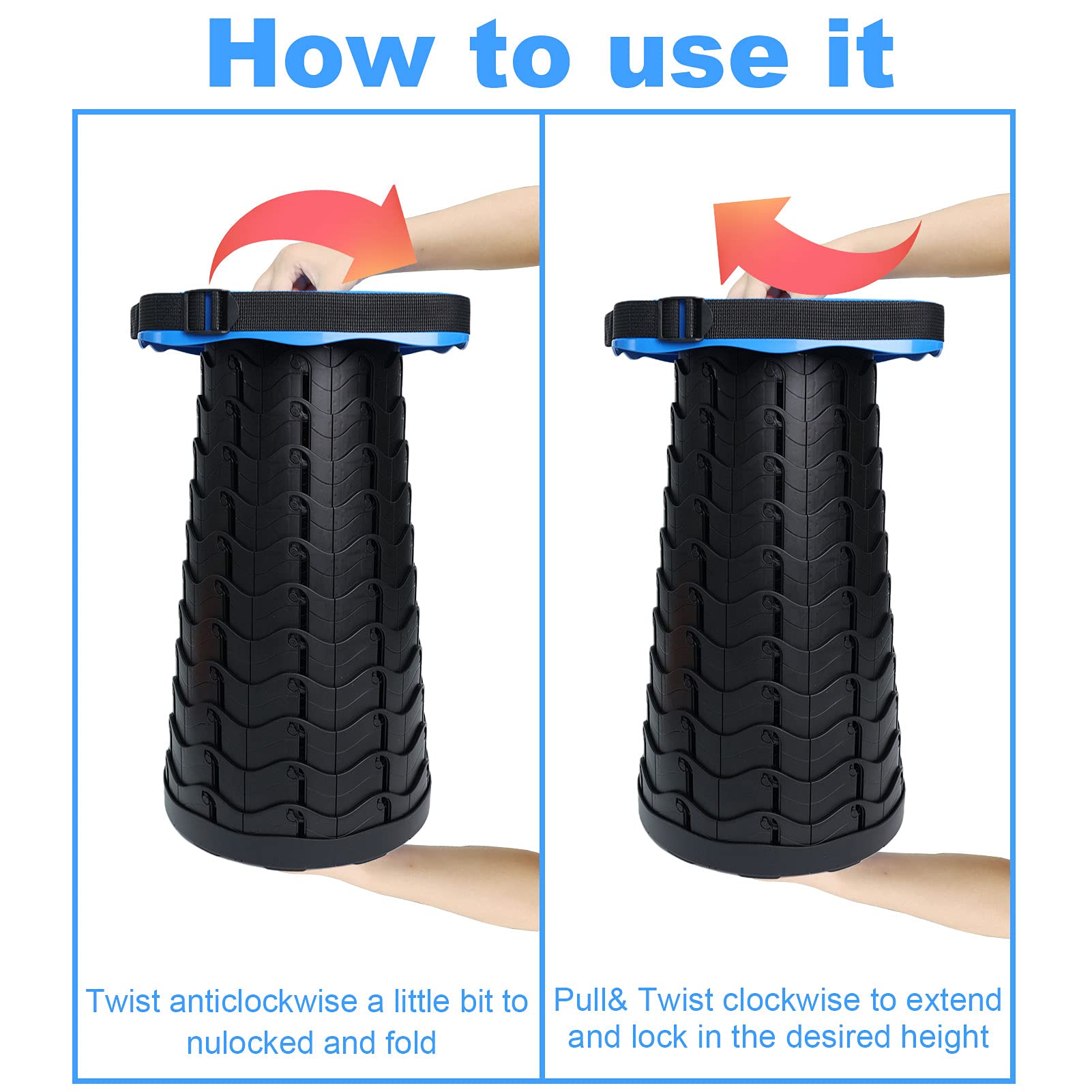 • Adjustable Height: 2.5-17.8inch can be adjusted according to your needs. Telescoping stool perfect to use for adults camping, hiking,travel, picnic, match and BBQ. Also can be used in living room, kitchen, bedroom, bathroom etc.