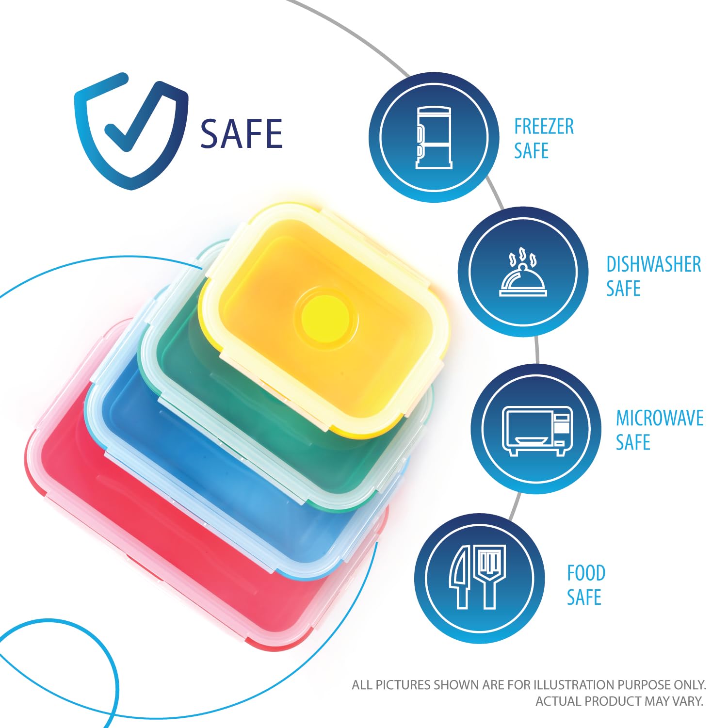 • Space Saving & Collapsible Design: These collapsible food storage containers fold down to just a fraction of their size, making them perfect for small kitchens, RVs, and camping gear. Stackable and easy to store, they help you maximize space in cabinets, refrigerators, and lunch bags.