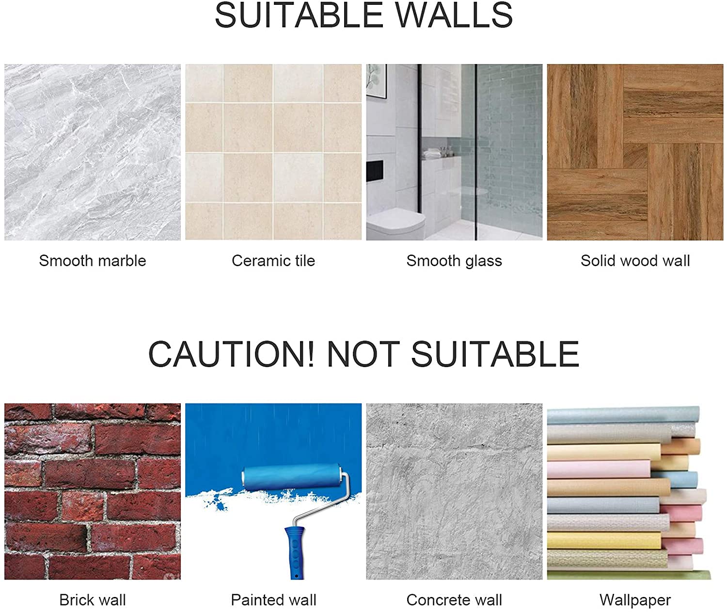 • Easy Installation Wall Hooks: Tear off the self-adhesive film, stick the hook on a smooth surface (such as: metal surface, marble, tile, glass, etc.), wait 24 hours before hanging things.