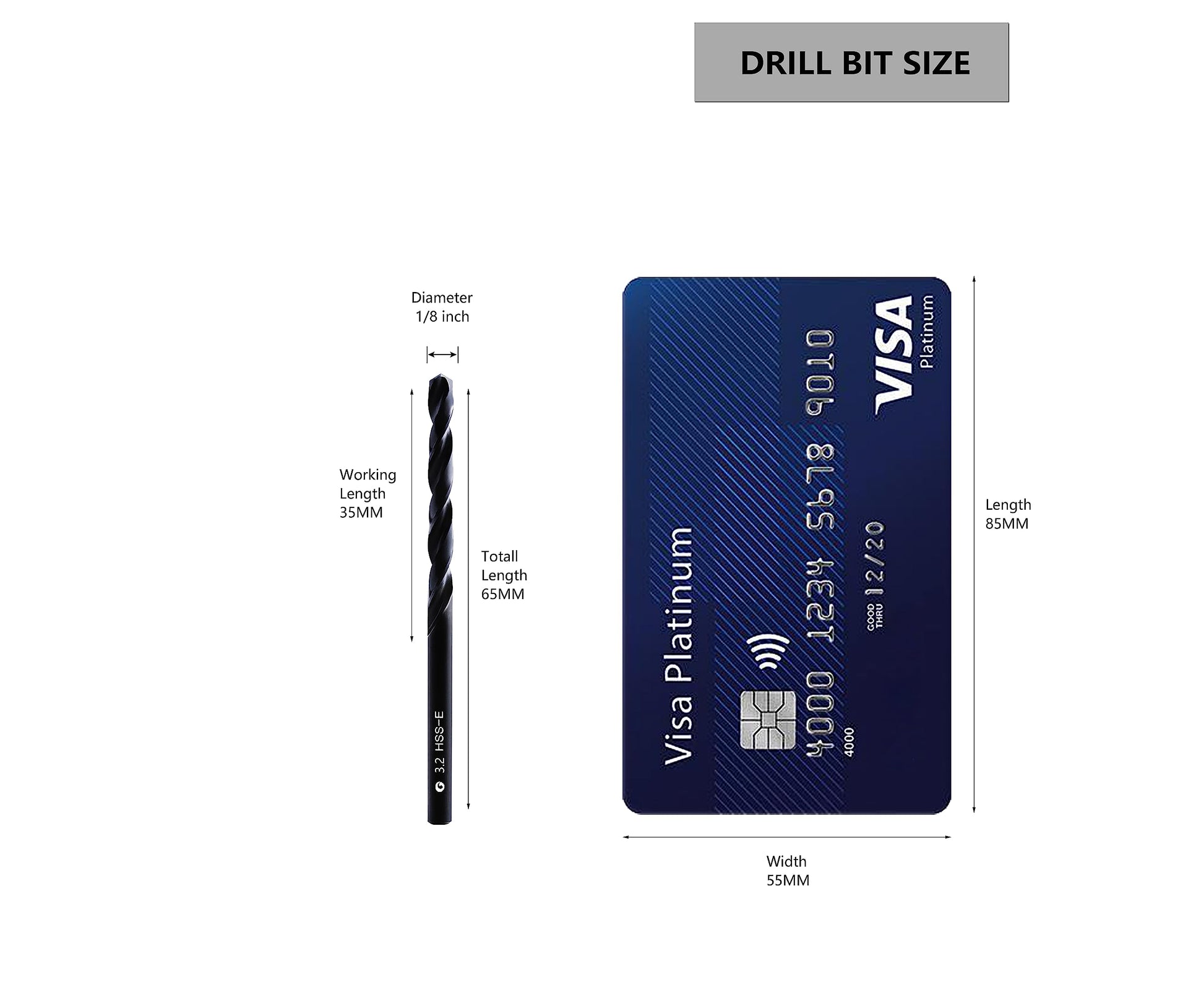 • Great product and very good quality. Made from M35 Hight-speed Steel and 5% Cobalt.Size:1/8inch,Total length:2.55inch,Work length:1.37inch.