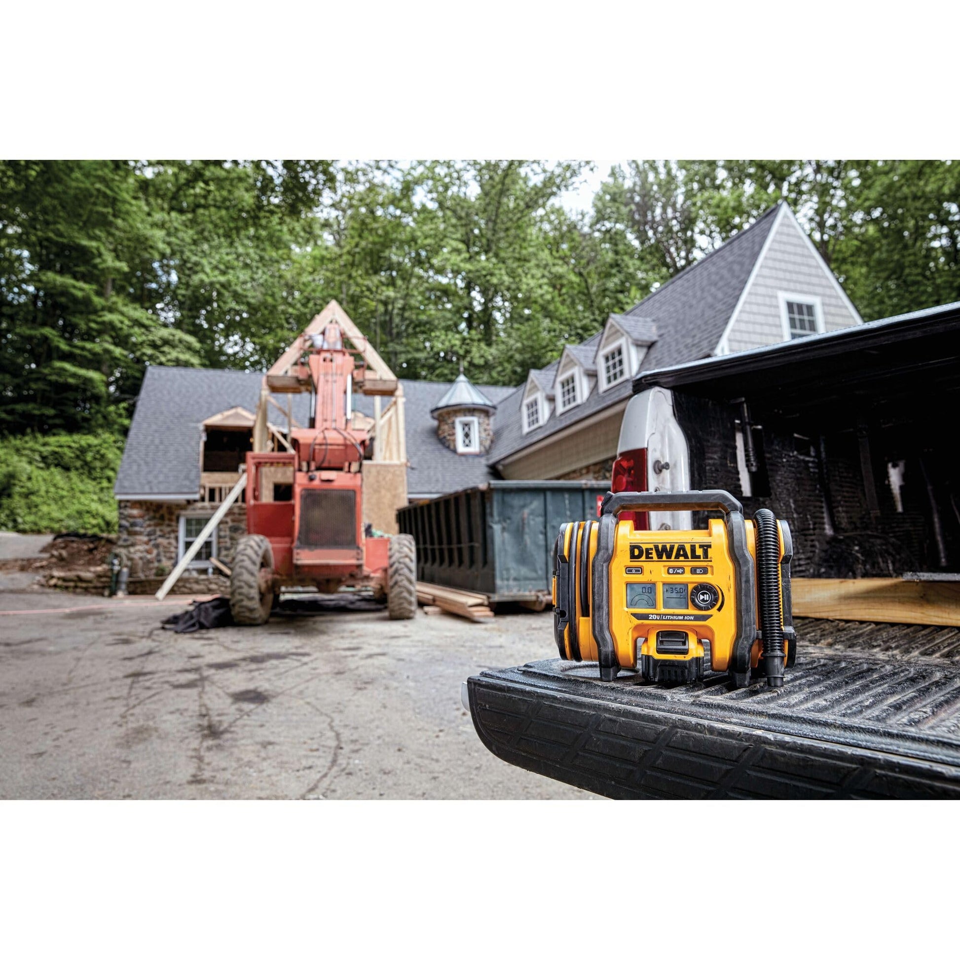 • Three power sources for inflation on a jobsite and on the go (20V MAX battery, 12V DC, or 110V AC)