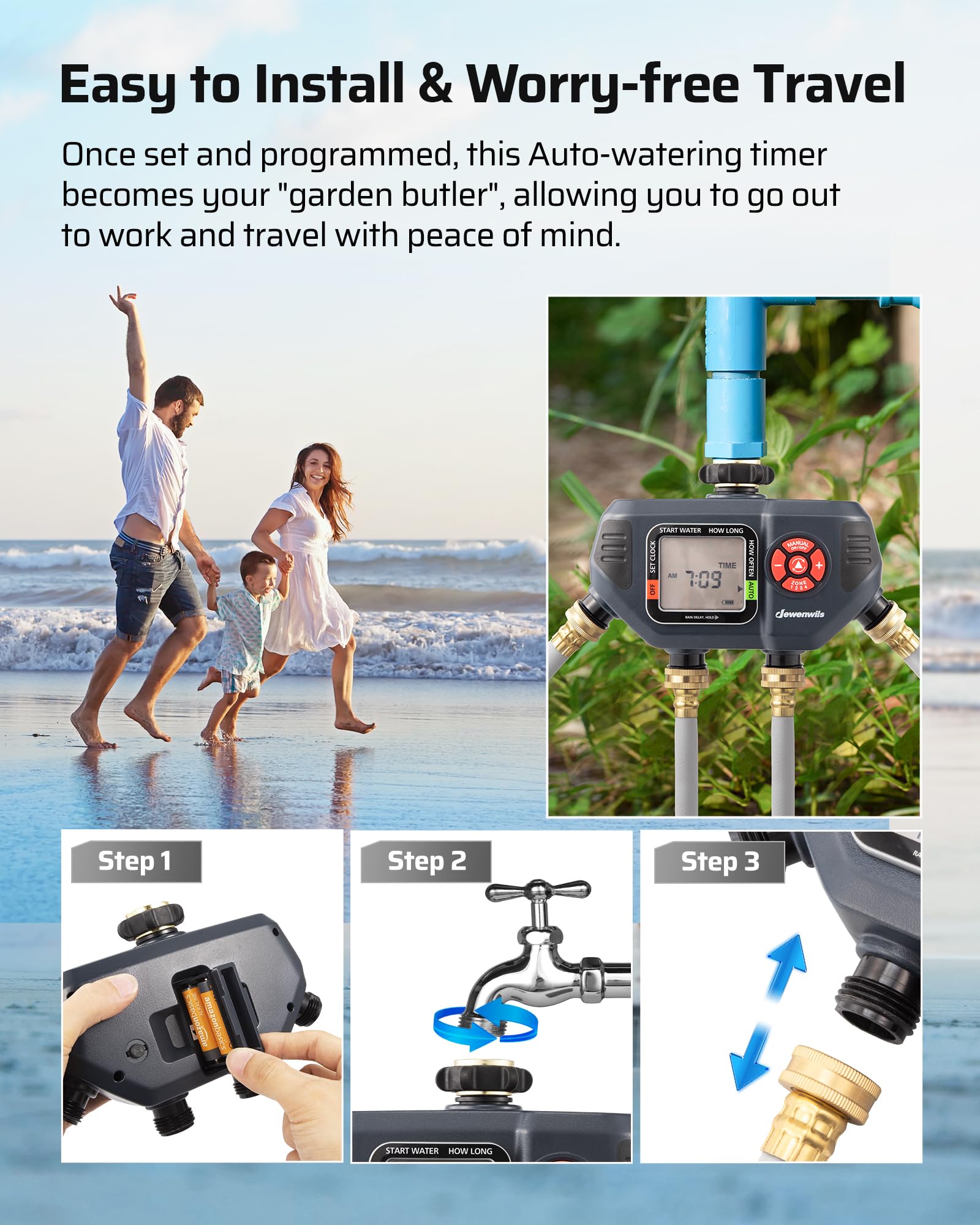 DEWENWILS Sprinkler Timer 4 Zone, Water Timer for Garden Hose with Rain Delay/Manual/AUTO Irrigation, Programmable Outdoor Faucet Hose Timer for Yard, Lawn