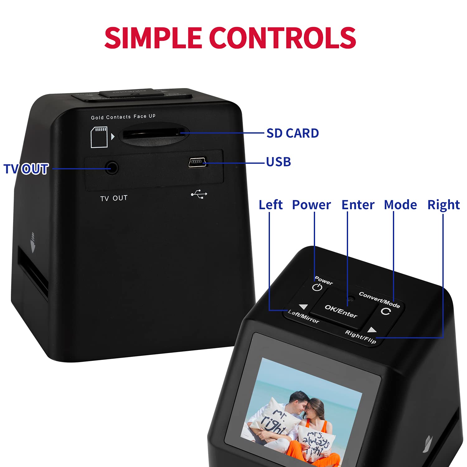 • ๐ŸŽžEasy to Use: simply push the old films or slides into the negative reader scanner, press the 'Scan' button when ready, it will turn the films or slides into digital photos. You can view and edit photos right on the black digital slide scanner. Improve quality up to 14/22MP w/ adjustable brightness, color & reverse/flip.