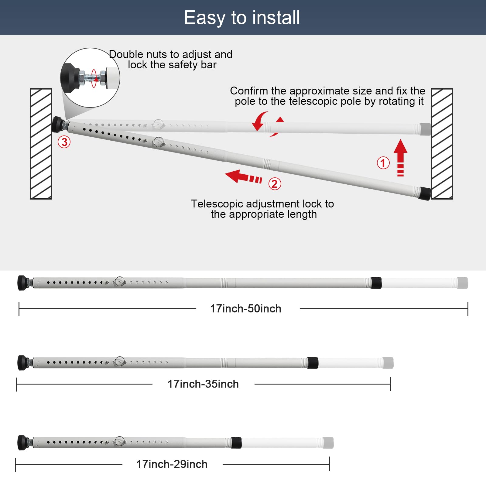 • A Variety of Adjustable: The patio door security bar with a total length of 50inch can be freely stretched and adjusted between 17.7-50.5inch to perfectly adapt to various lengths.