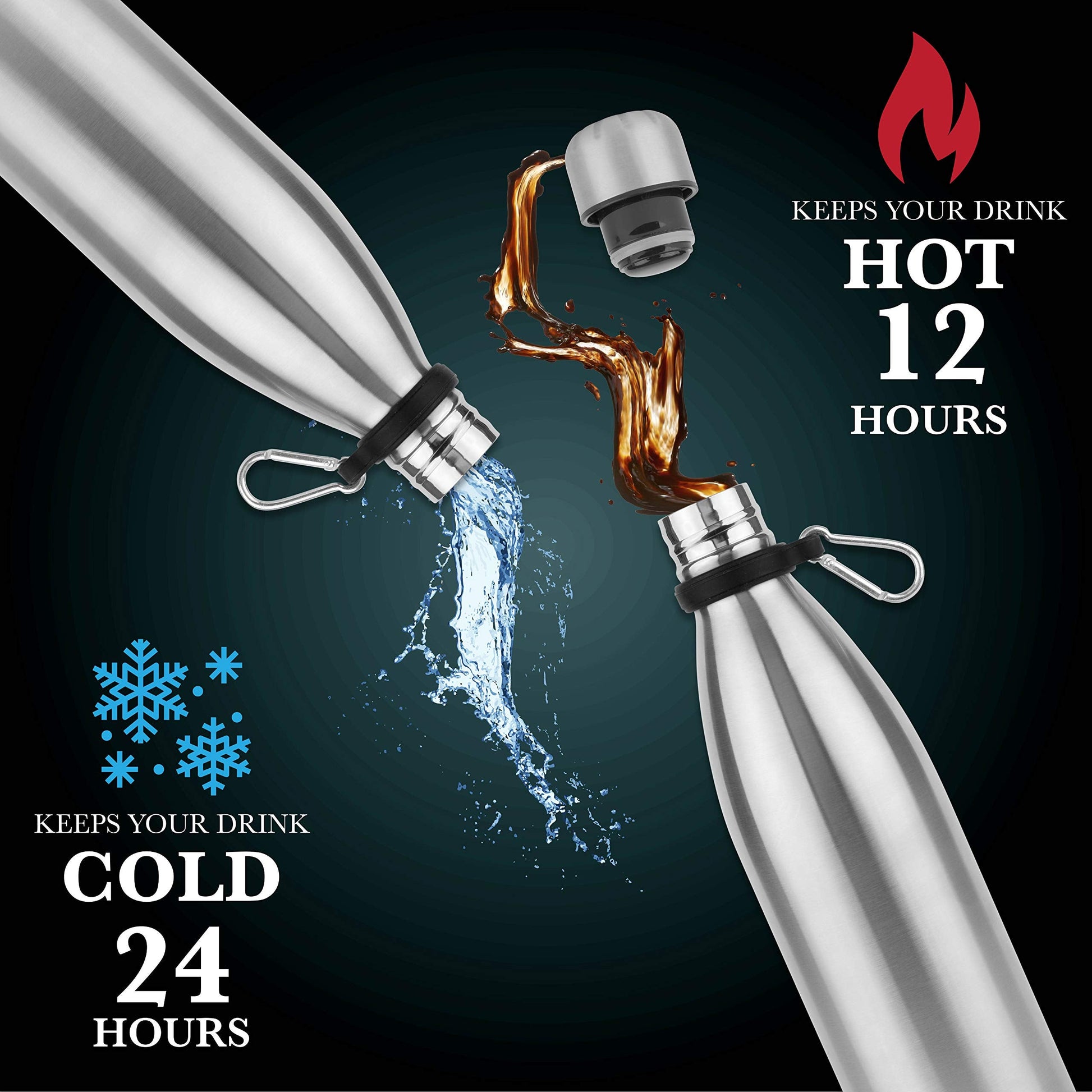 • KEEP YOUR DRINKS HOT OR COLD FOR HOURS - Our Stainless Steel Water Bottles feature excellent insulation that keeps your drinks hot for 12 hours and unbelievably cold for 24 hours! This water storage is perfect for gym-goers, workers, athletes, and more!