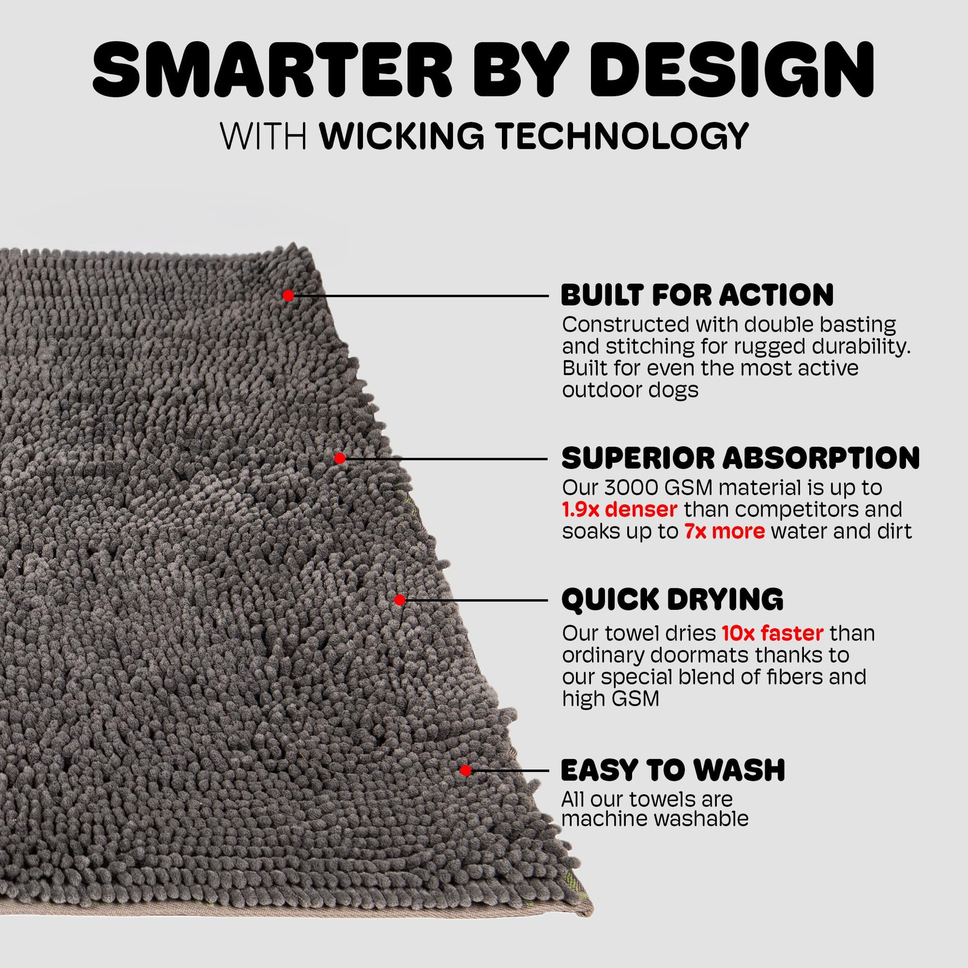 Dog Gone Smart Dirty Dog Doormat - Fast Drying Rug with Super Gripper Backing for Clean Floors - Super Absorbent and Machine Washable Mat for Muddy Paws - Cool Grey