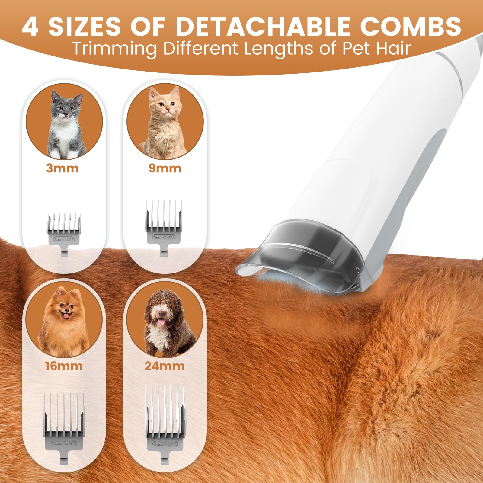• 7-In-1 Pro Pet Grooming Kit: Rely on dog grooming kit for one-stop pet care and refine your pet’s life. Suction and grooming all in one. Electric clippers and sucking hair at the same time, effectively remove pet hair and fine dust and keep it neat. Dog paw trimmer and Nail grinder provide excellent cutting. Cleaning brush and Nozzle head brush for deeply clean, effectively sucking out loose hair and dandruff on the clothes, sofa crevices and carpet