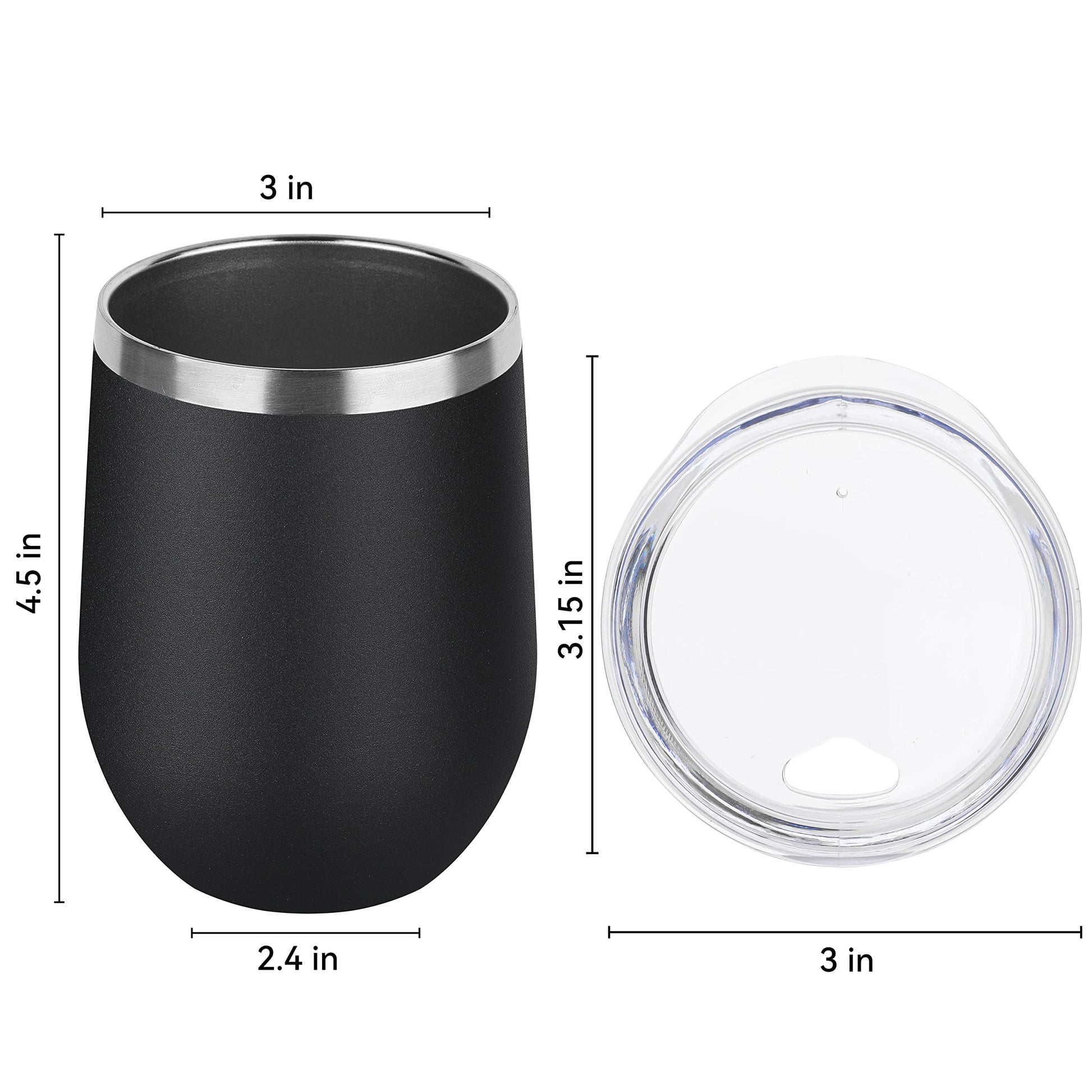 DOMICARE Stainless Steel Wine Tumbler Bulk with Lid, Personalized Insulated Tumblers Set, 12oz Travel Coffee Cups Pack of 12, Black
