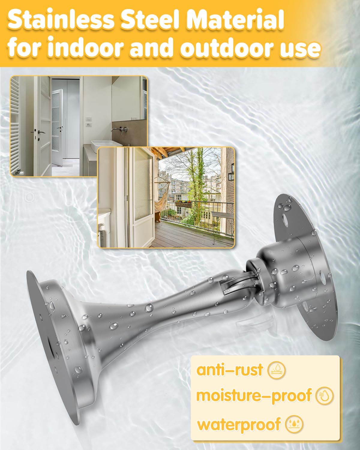 • Space-saving Wall & Floor Mounting: Unlike traditional doorstops, we deliver a compact design that unobtrusively conserves space in your home or office; Our product adapts to your needs, whether mounted on the wall, floor, door top, or near the handle; It's rustproof, weatherproof, and ready for humid or outdoor conditions