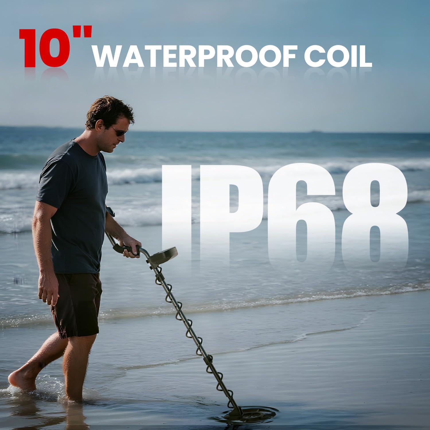 • 【10” IP68 Waterproof Search Coil – Deep Detection for Beach & River Hunting】:The larger 10-inch waterproof metal detector coil covers more ground and detects deeper than smaller coils—ideal for wet sand, shallow water, riverbanks, creeks, and rainy conditions. Perfect for finding buried coins, jewelry, and gold nuggets. (Control box is not waterproof. In seawater, lower sensitivity to reduce interference.)