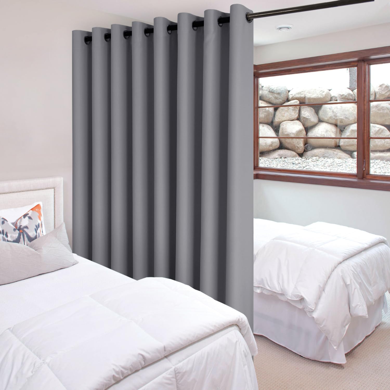 DWCN Room Divider Curtain - Extra Wide Blackout Curtain for Sliding Glass Door, Living Room, Bedroom Partition and Shared Office Space, 1 Grommet Curtain Panel, 12ft Wide x 6ft Tall, Light Grey