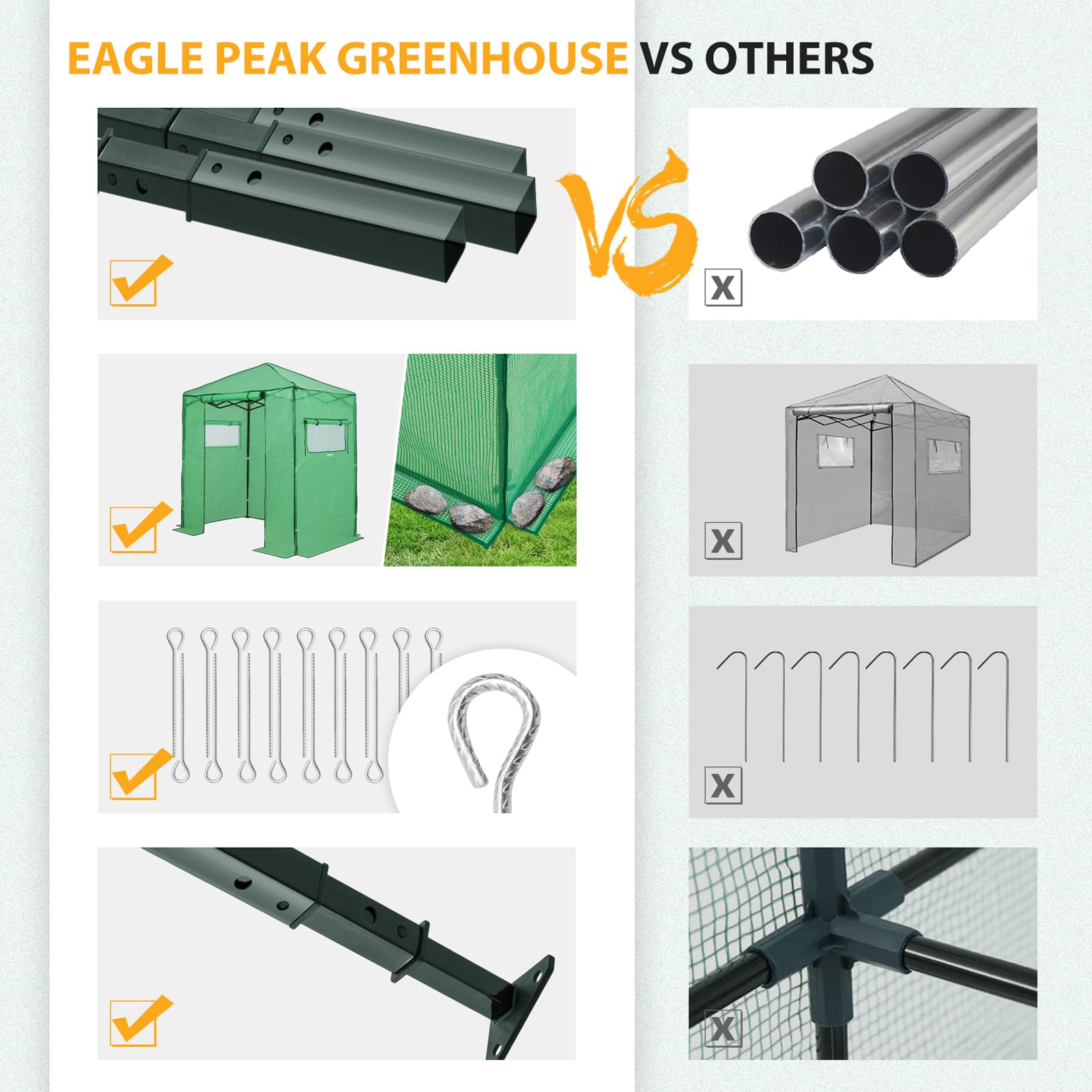 • EAGLE PEAK Promise: EAGLE PEAK offers a 1-year limited after sale protection from the original date of purchase. Unlike many other greenhouse manufacturers, EAGLE PEAK offers this for our frames, tops! If you have any other questions, please contact our professional service team.
