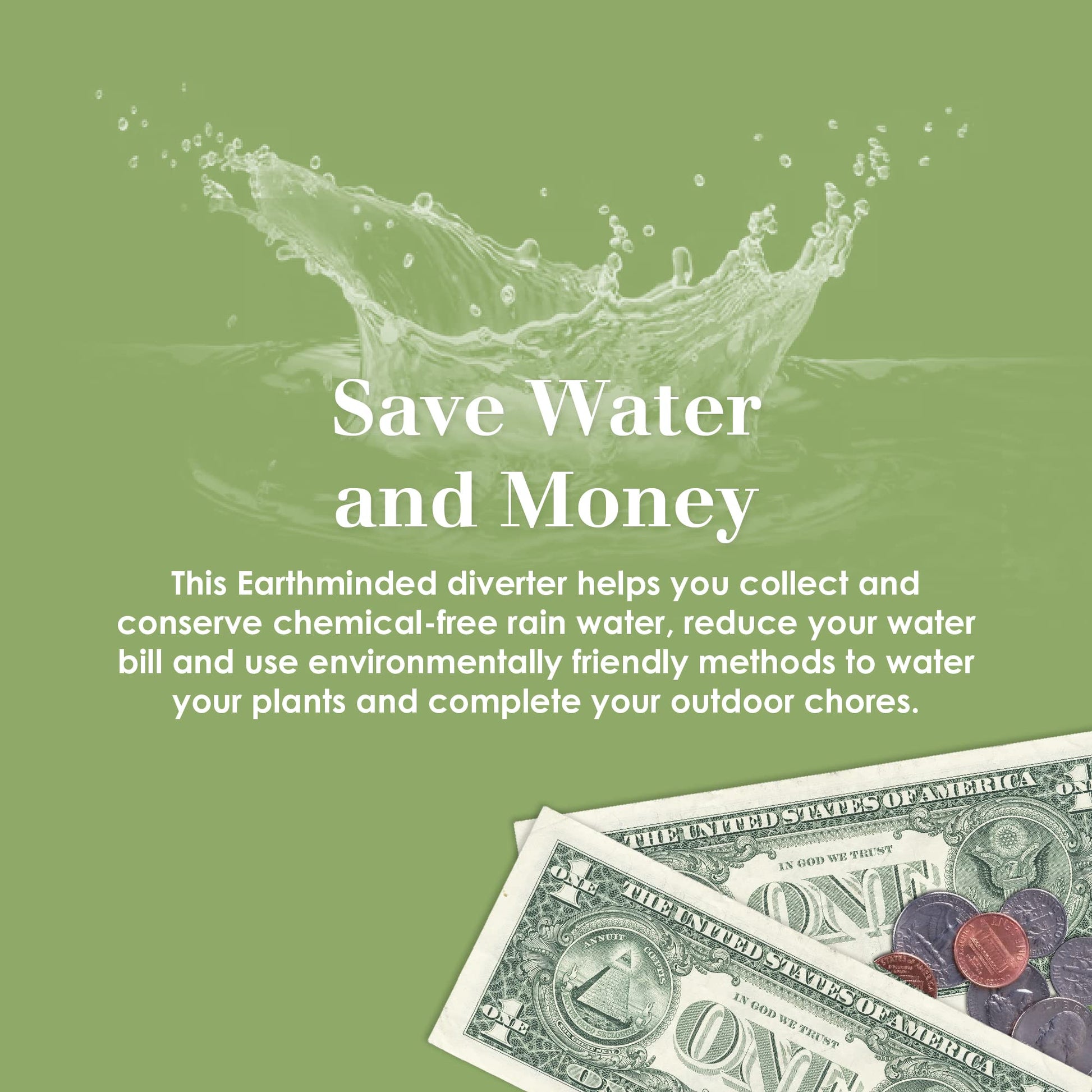 • SAVE WATER AND MONEY - collect and conserve chemical-free rain water, reduce your water bill and use environmentally friendly methods to water your plants and complete your outdoor chores