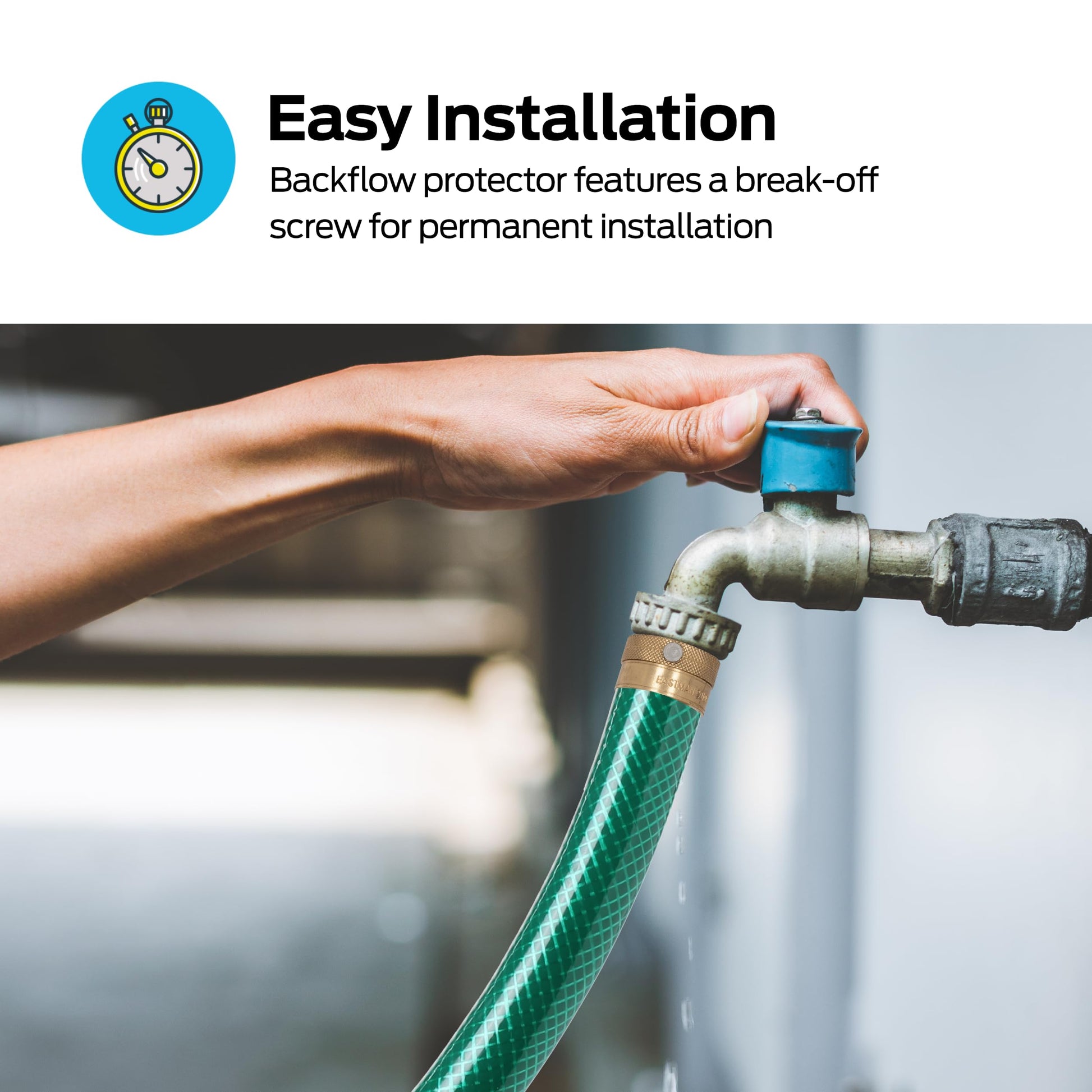 • EASY TO INSTALL: Backflow protector features a break-off screw for permanent installation