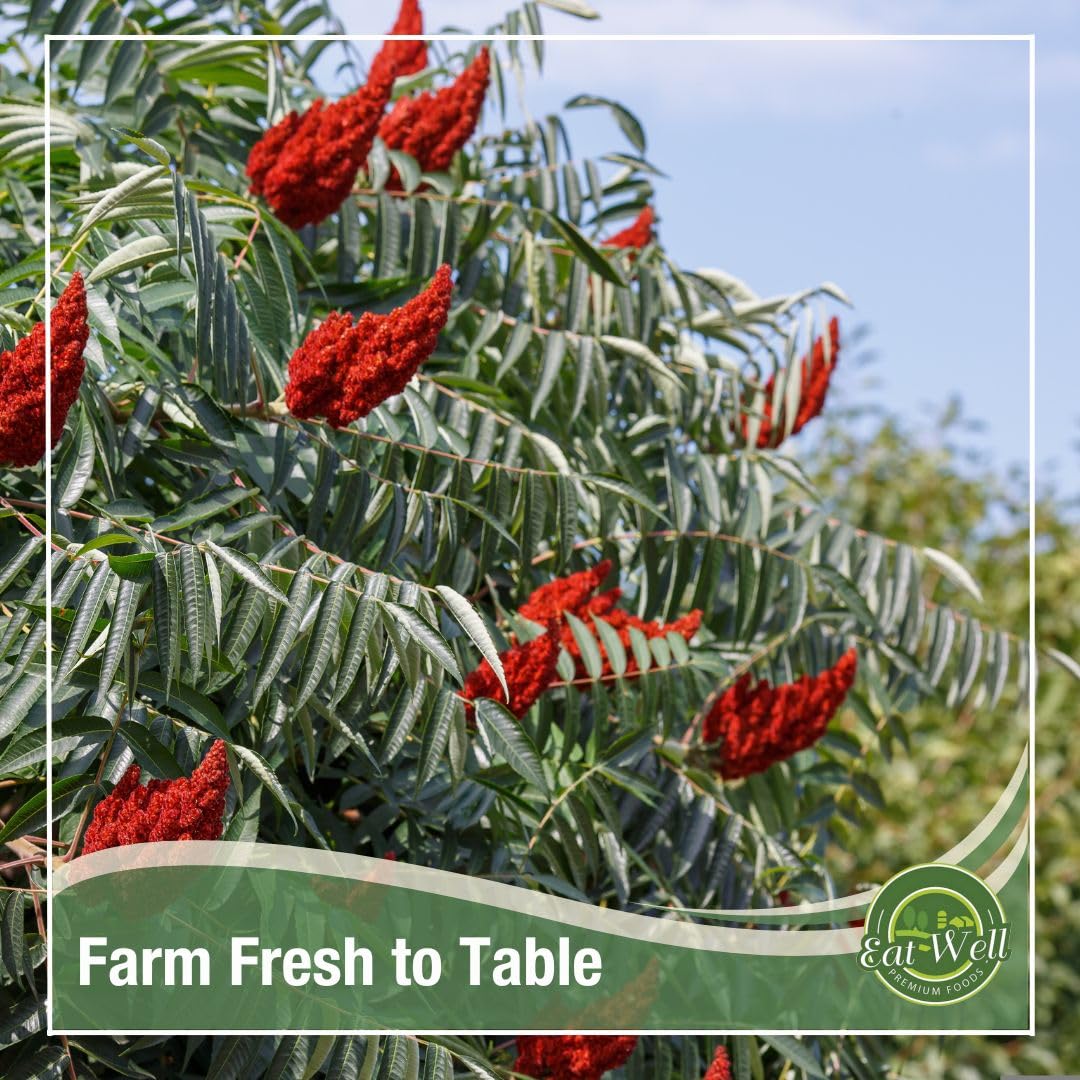 Eat Well Premium Foods Sumac Spice Powder 8 oz Ground Sumac Berries in Resealable Pack, 100% Natural Traditional Middle Eastern Spices, Sumac Seasoning with Pure Gourmet Ingredients for Cooking, Tangy and Citrusy
