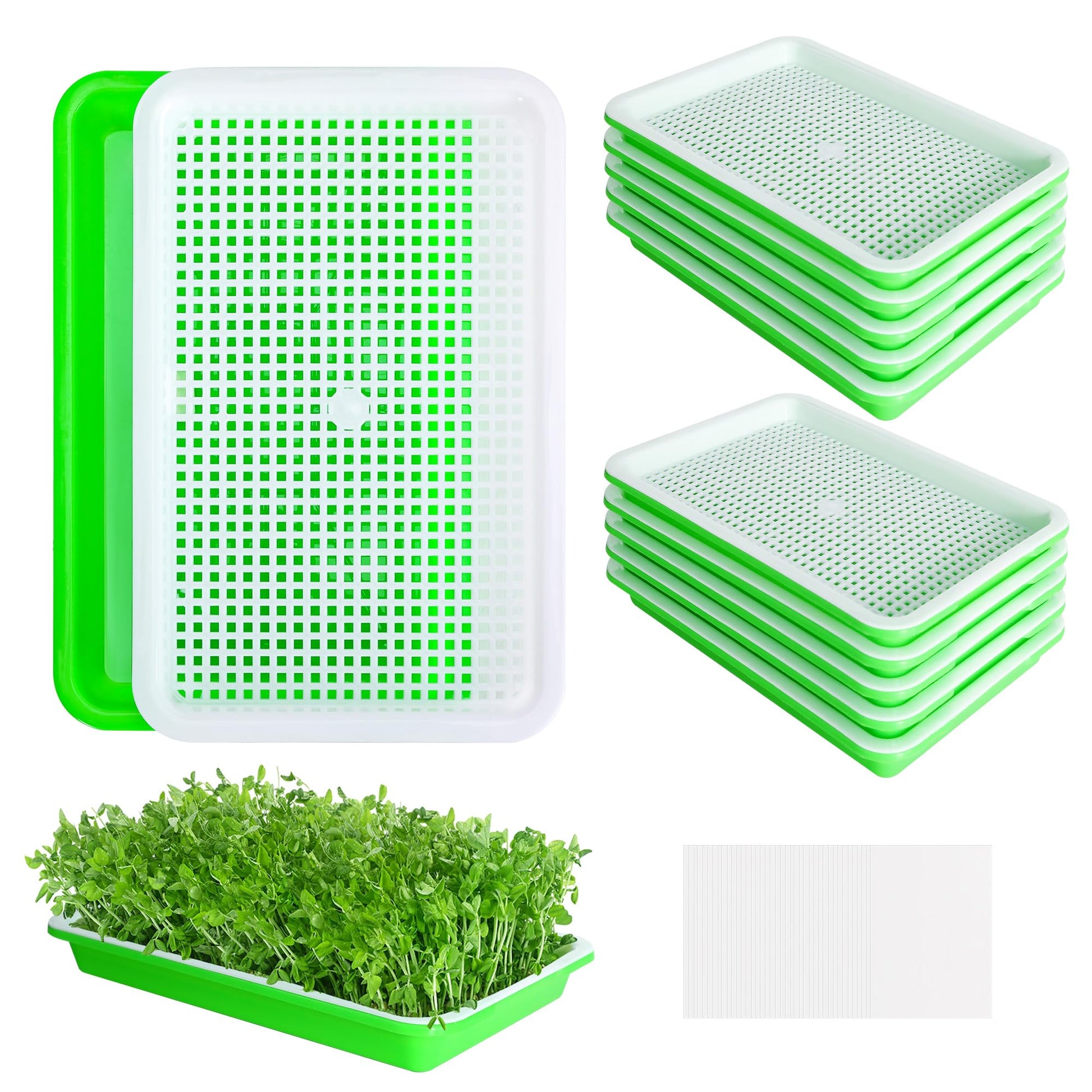 EBaokuup 10Pcs Seed Sprouter Tray with Drain Holes - BPA Free Seed Garden Plant Germination Propagation Trays, Soil-Free Wheatgrass Tray Sprouter Microgreens Growing Kit with Germinating Paper