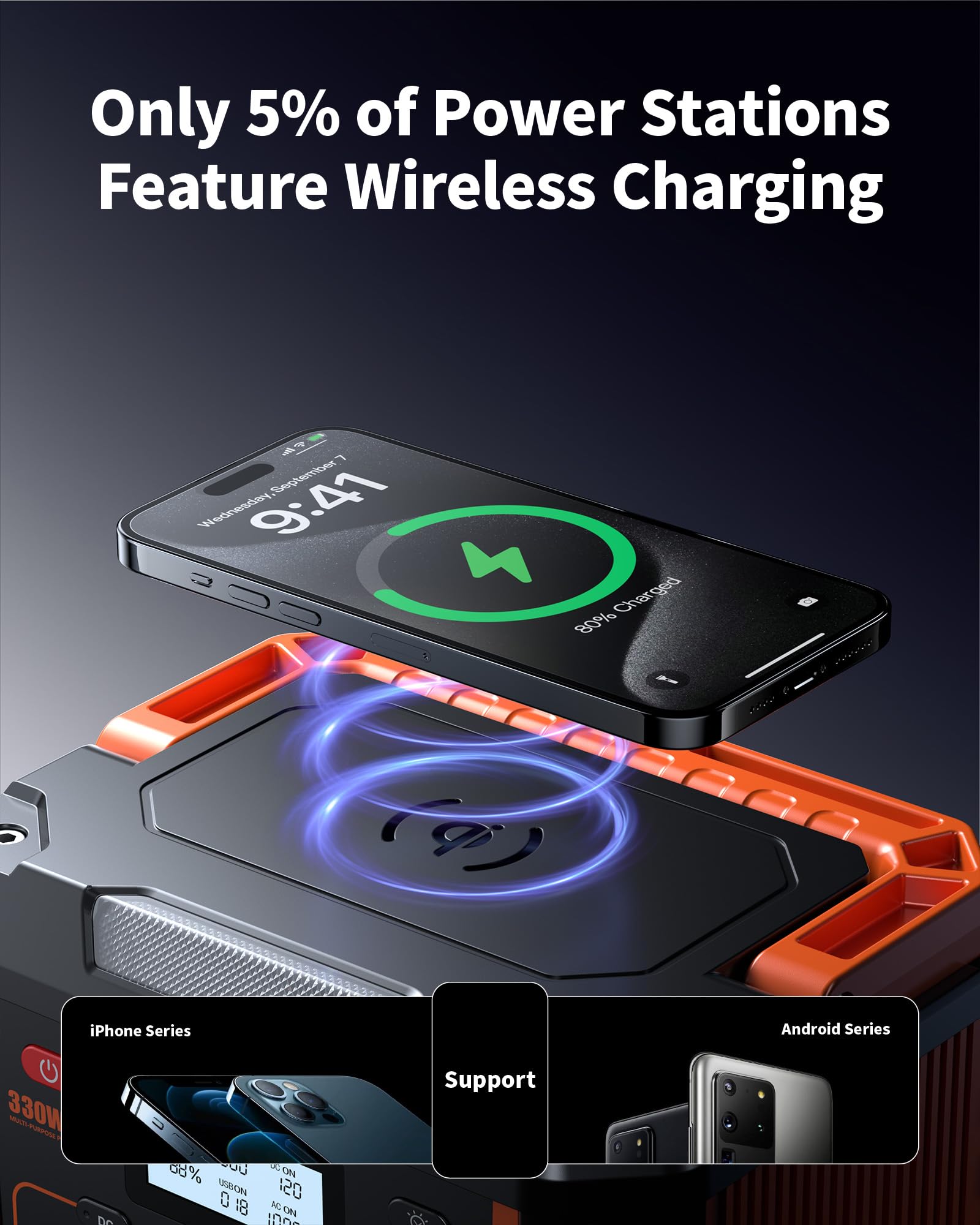 • 【Up to 9 Simultaneous Devices】: Featuring 3* DC outlet, 3* fast charge 3.0 port, 1* AC outlet, 1* PD 60W USB-C port and 1*Wireless Charging for phone. Also including SOS LED bright light. It can meet all you meets and power your smartphone, tablet, laptop, camera, light, drones, fans, in-car appliances, CPAP machine anytime anywhere.