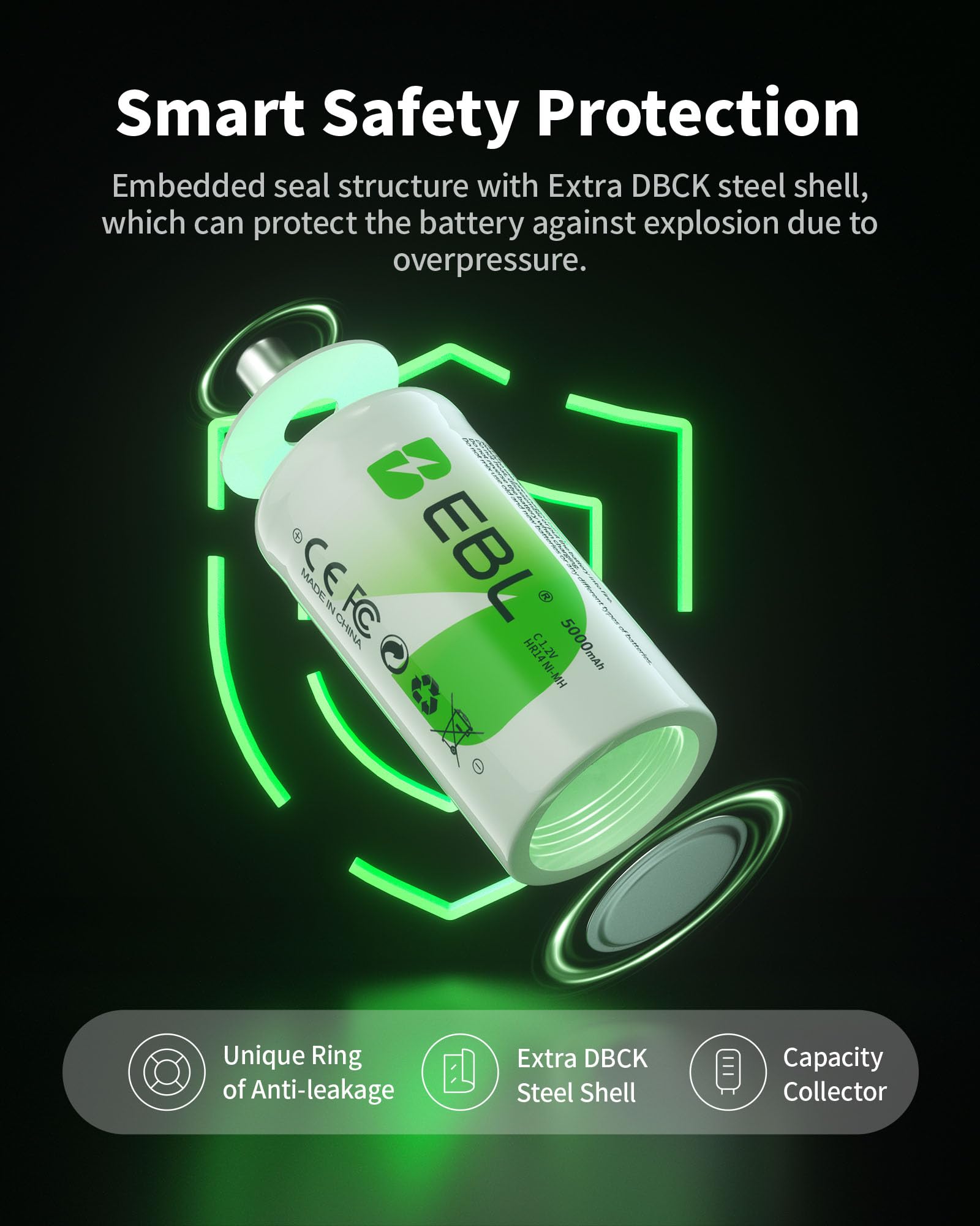 EBL Rechargeable C Batteries 5000mAh Ni-MH C Size Battery, Pack of 8