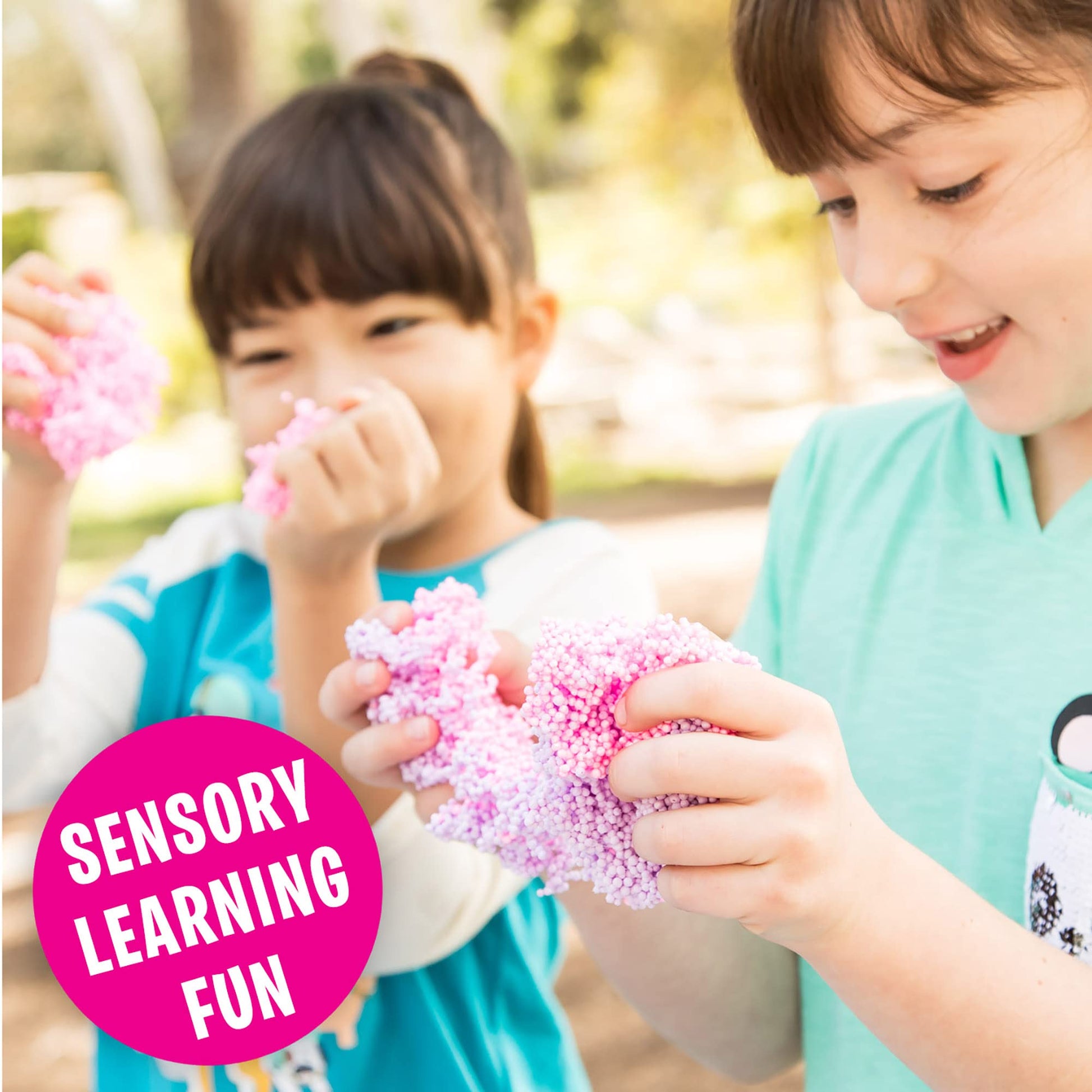Details: Make some Playfoam magic with Playfoam Pals Unicorn Magic collectibles! Each set includes squishy, squashy, heart studded Playfoam; a mystery unicorn charm; a mystery-colored locket with surprise clip shape; a mystery decorative gem; and a collector’s guide. Pop open the rainbow to reveal the heart-studded Playfoam and the four magical Playfoam collectibles hiding inside – then use the Playfoam to create clouds, perches, and other play props perfect for pretend play fun. Non-toxic Playfoam never dries out so the fantastical fun never ends – plus its super for sensory play!