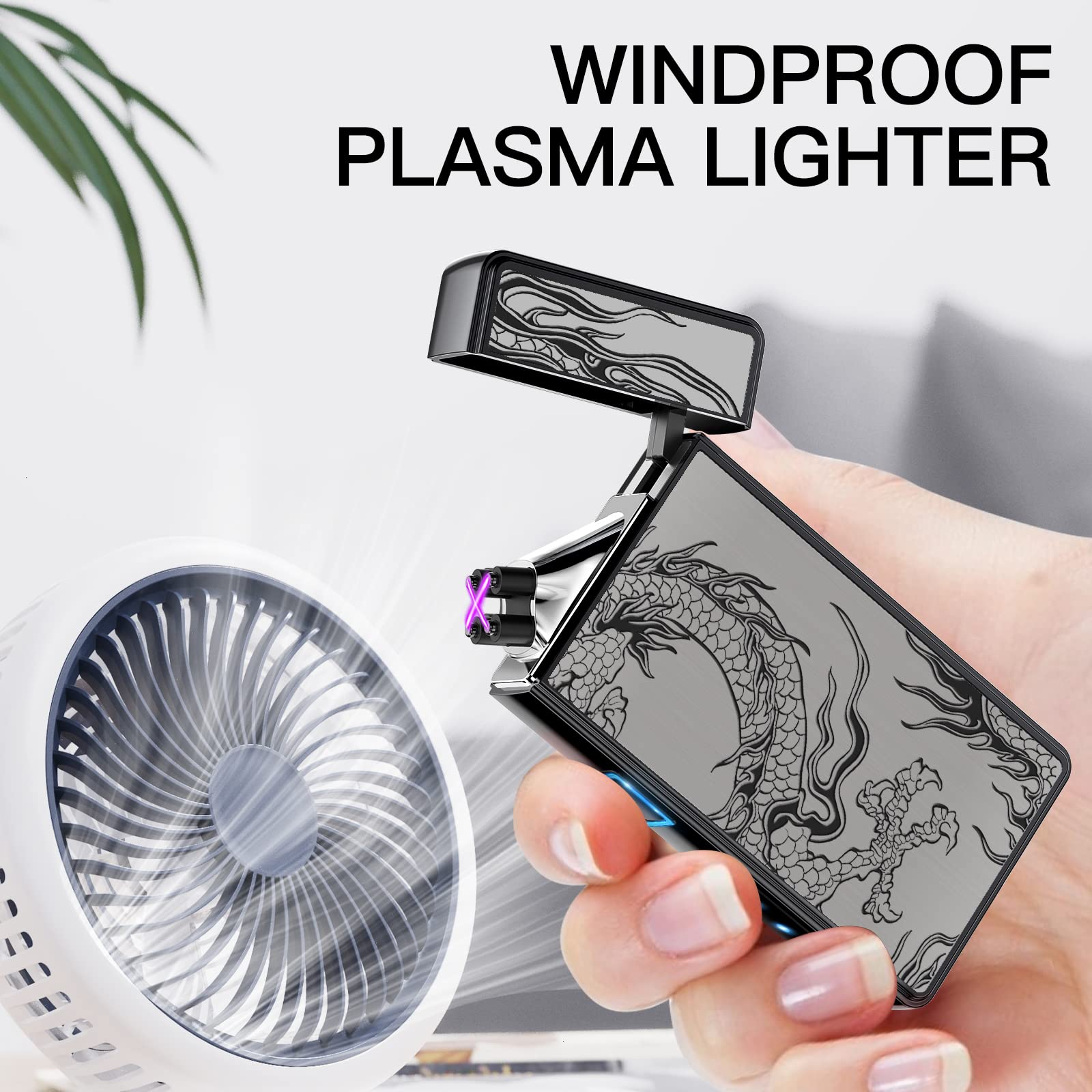 Electric Lighter, USB Rechargeable Plasma Arc Windproof Flameless Electronic Butane Free Mini Lighter for Candles, Fireworks, Outdoor Camping Activities (Black Dragon)