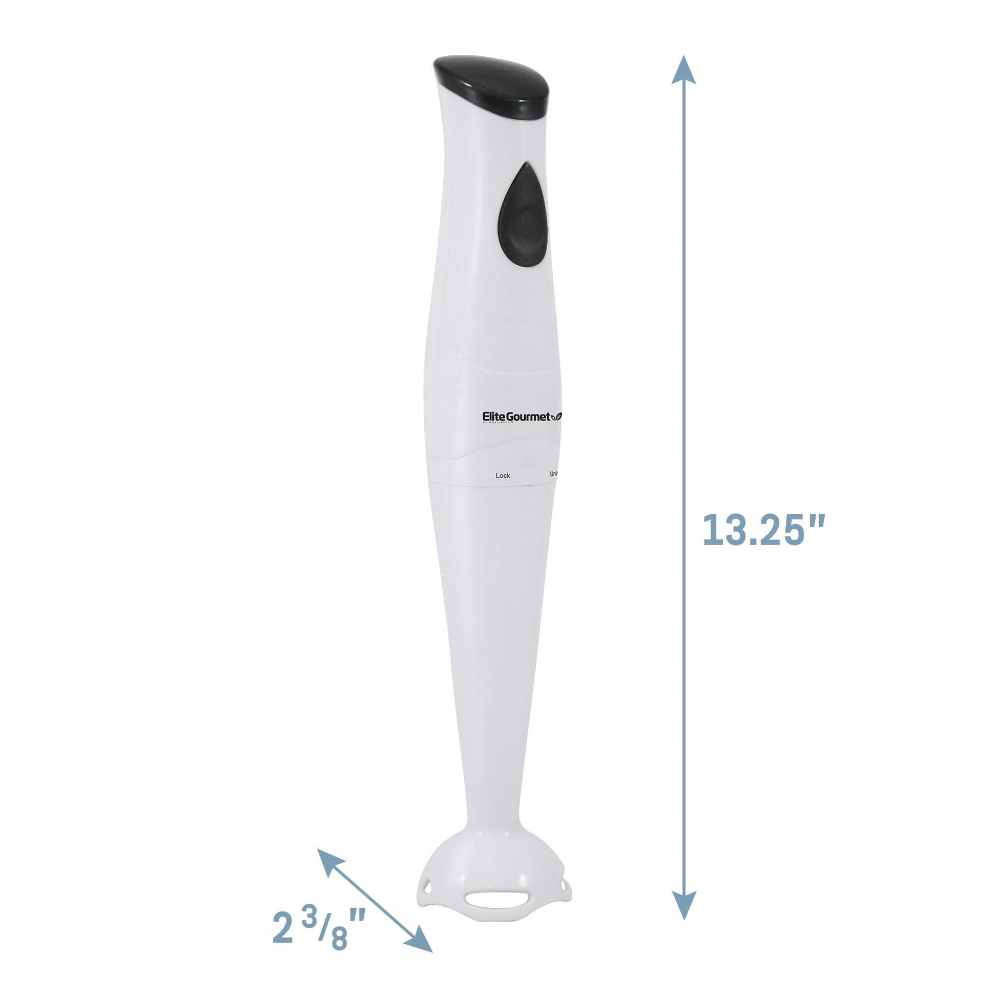 Elite Gourmet EHB-2425X Electric Immersion Hand Blender Stick, Mixer, Chopper, 1-Touch Control Multi Purpose, 150 Watts, For Soups, Sauces, Baby Food, White