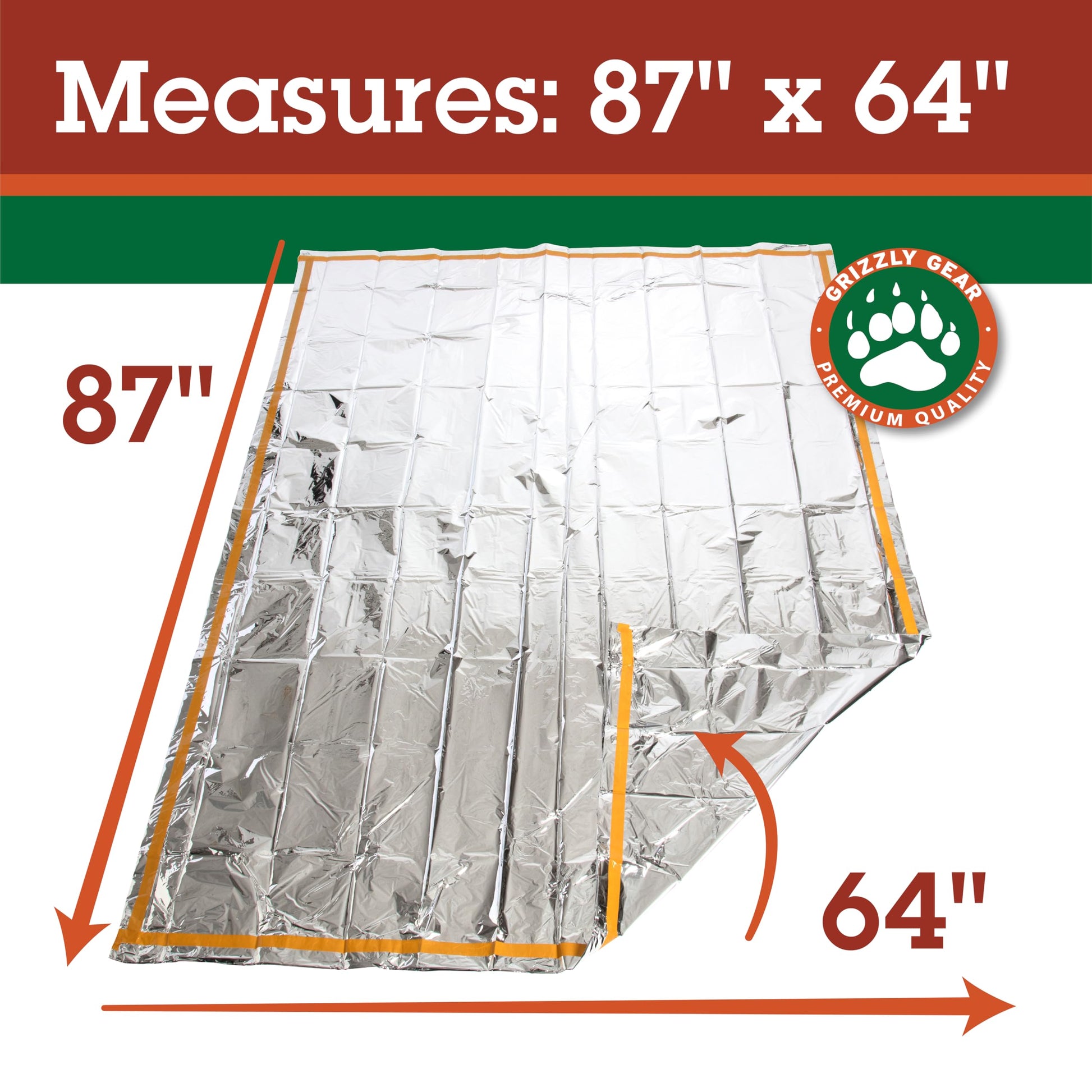 Emergency Thermal Mylar 2 Person Sleeping Bags- 1 Pack -Ultra Compact for Camping, Survival, Disaster Bivouac Shelter- Pocket Sized, 7.25ft x 5.25ft - Retains 90% of Body Heat and Repels Wind & Water
