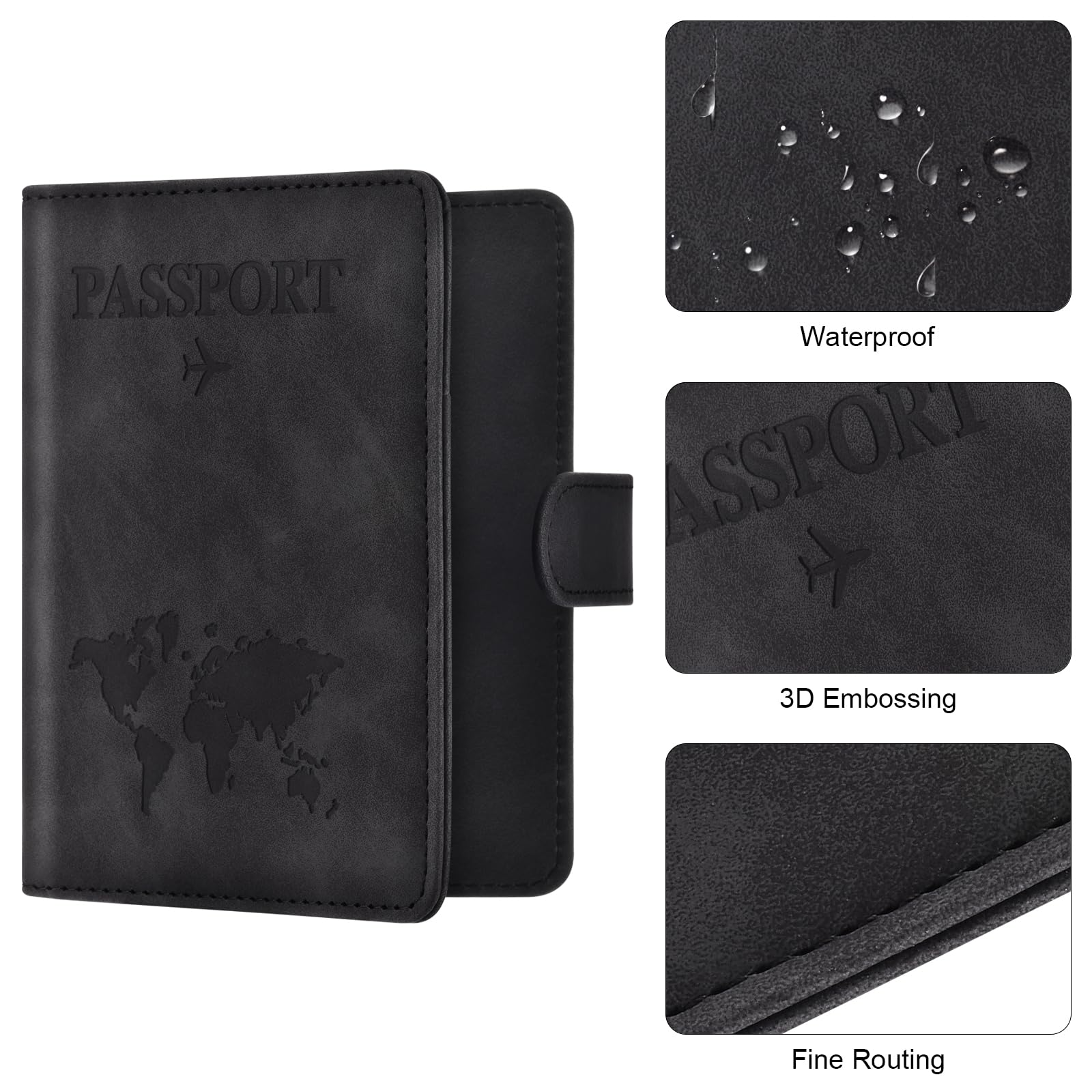 Eoehro Passport Holder for Travel Essentials, Passport Wallet Cover Case for Travel Must Haves Accessories,Passport Book Holders for Women and Men(black)